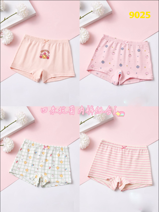 2025년 가을 신상 여아 청소년 사각팬티 순면 속옷 A급 사각팬티 어린이용 엉덩이 꼬집지 않는 디자인