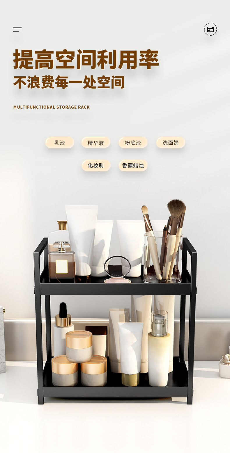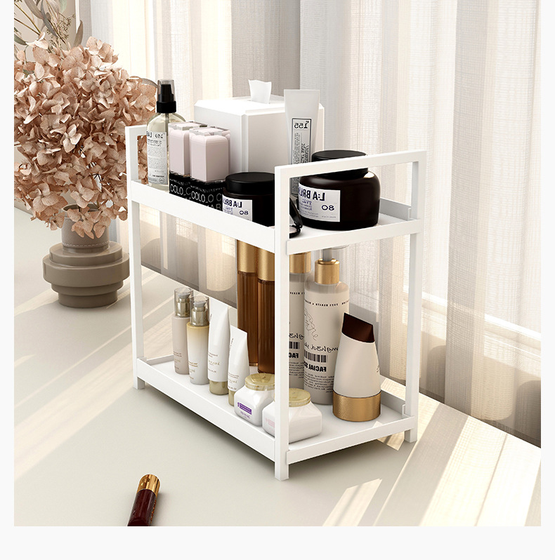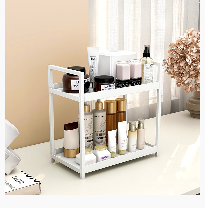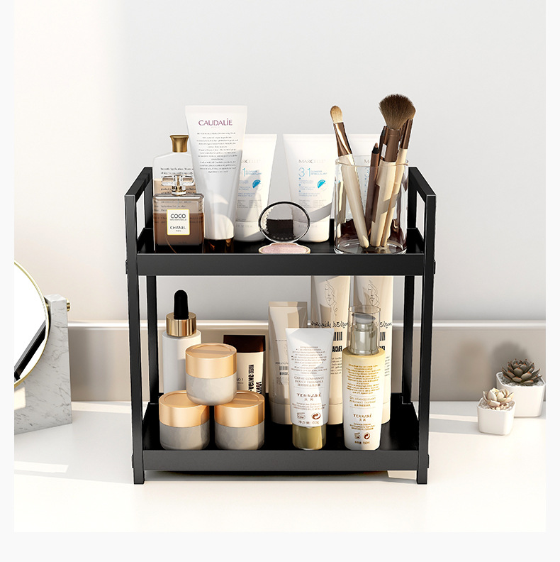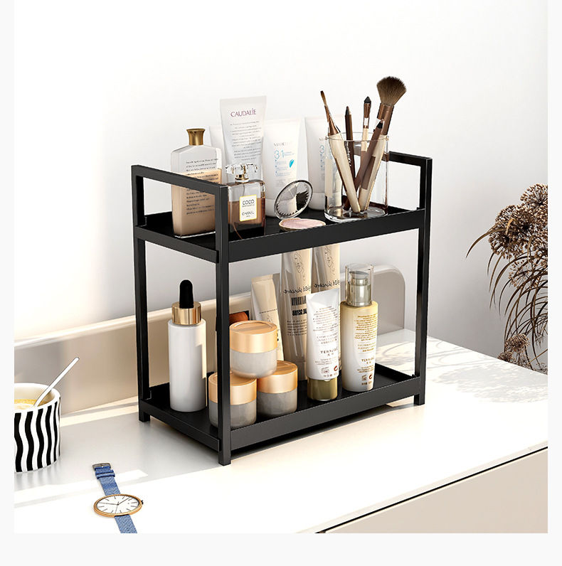 더블 레이어 데스크탑 스토리지 랙 주방 플라스틱 구성 랙 욕실 조리대 향수 화장품 스토리지 랙 드레싱 테이블 랙스토어 가기