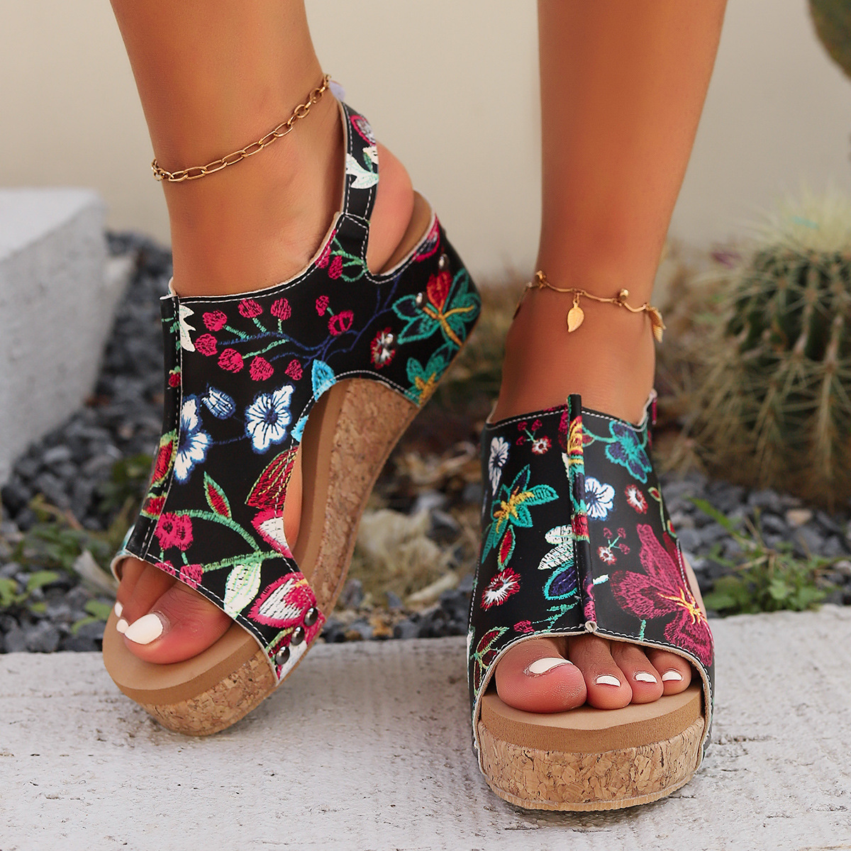 여름 새로운 유럽과 미국 스타일의 경량 쐐기 높이 증가 샌들 2024 여성을위한 국경 간 플러스 사이즈 웨지 스팽글 샌들