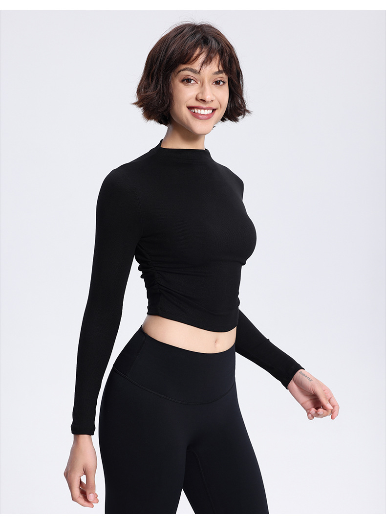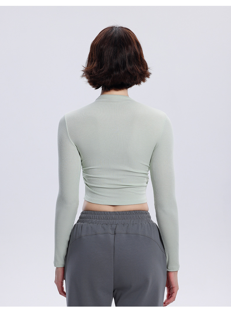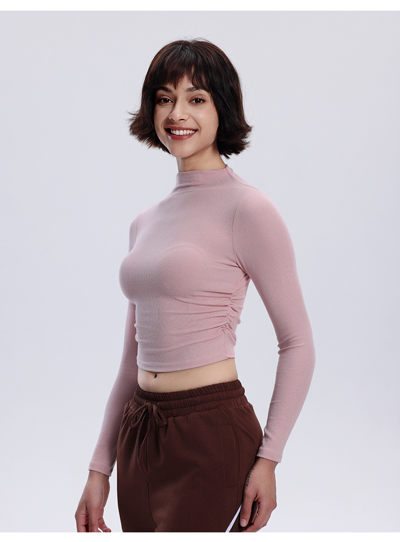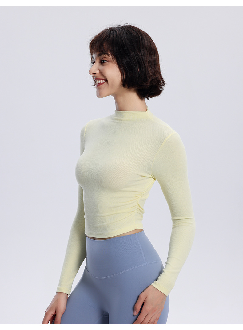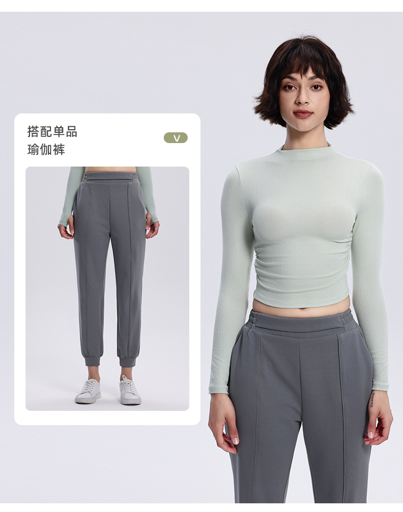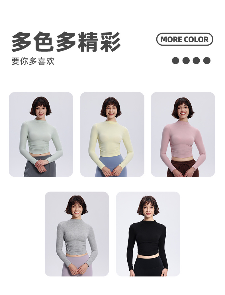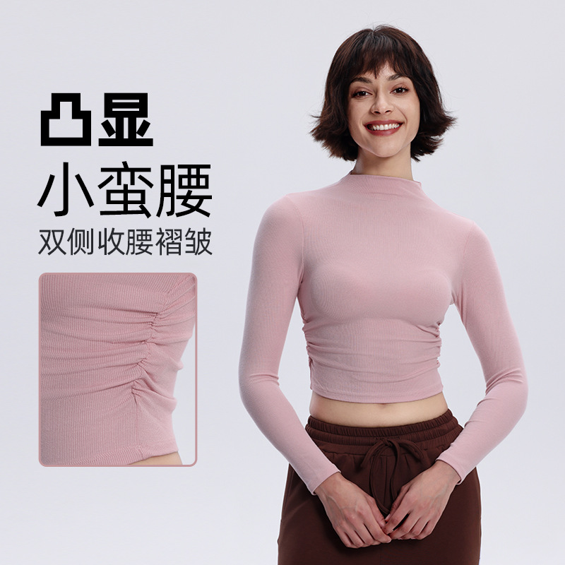 2024 새로운 요가 티셔츠 긴팔 여성용 짧은 허리 주름 달리기 스포츠 캐주얼 하프 하이 칼라 요가 옷스토어 가기