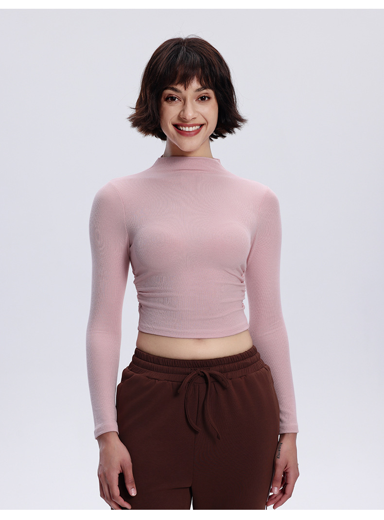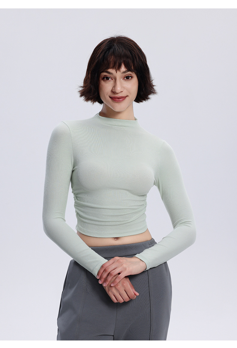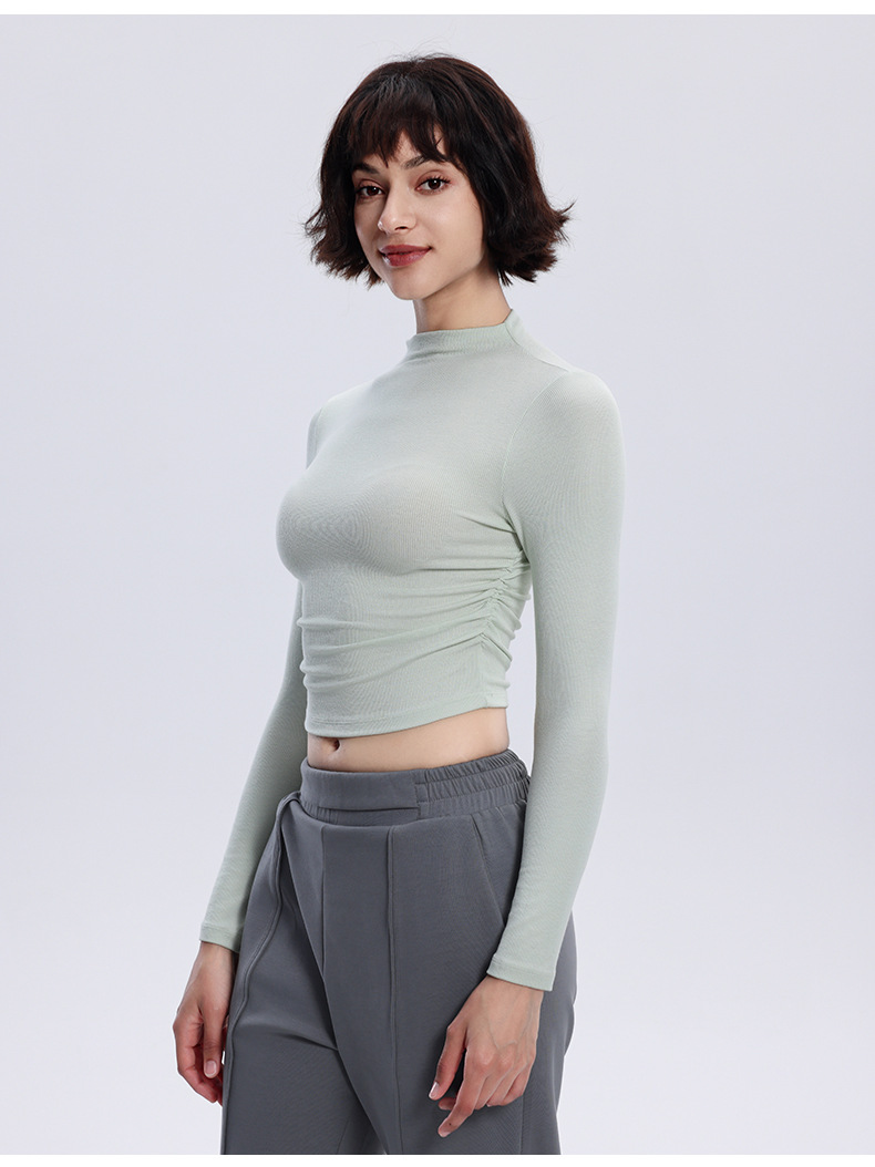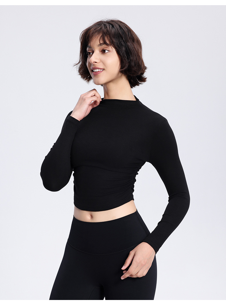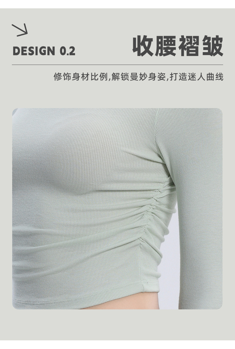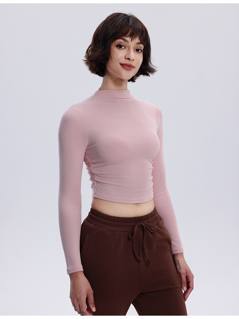 2024 새로운 요가 티셔츠 긴팔 여성용 짧은 허리 주름 달리기 스포츠 캐주얼 하프 하이 칼라 요가 옷스토어 가기