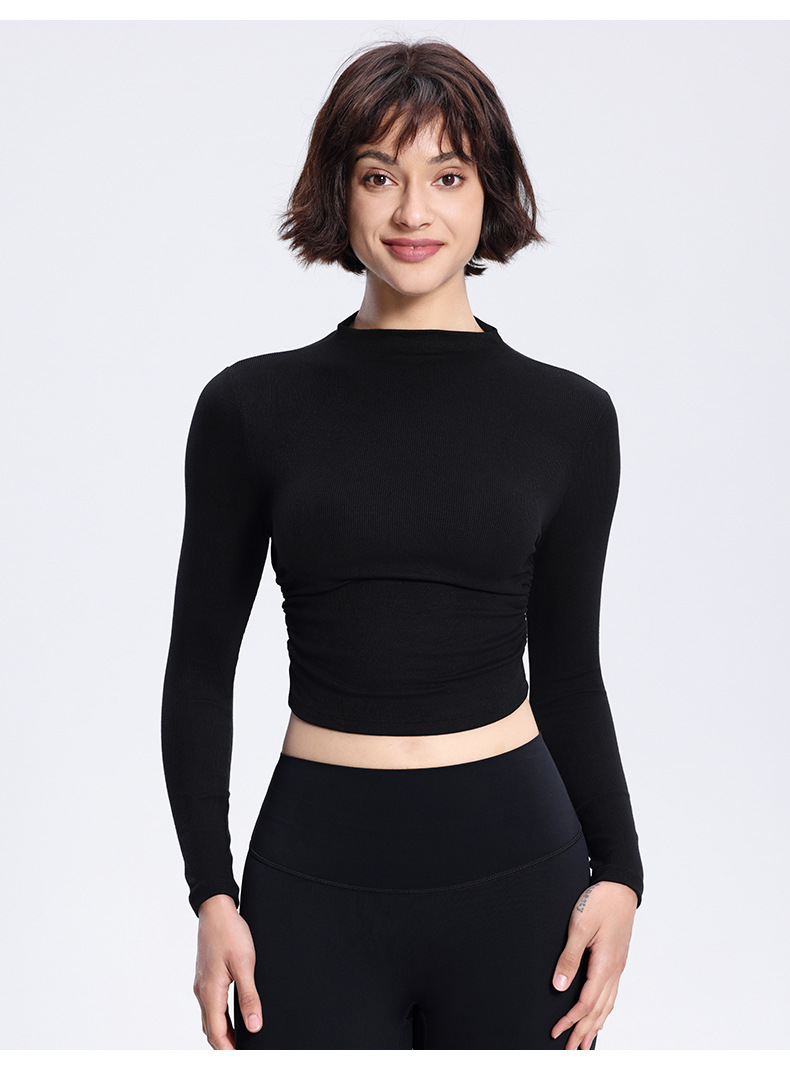 2024 새로운 요가 티셔츠 긴팔 여성용 짧은 허리 주름 달리기 스포츠 캐주얼 하프 하이 칼라 요가 옷