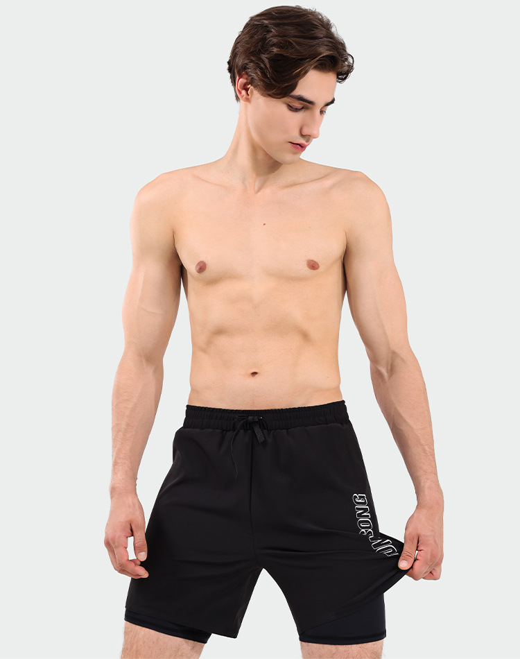 모마 송 남자 수영 트렁크 안티 당황 더블 레이어 느슨한 수영 트렁크 세트 5 점 비치 팬츠 온천 수영복