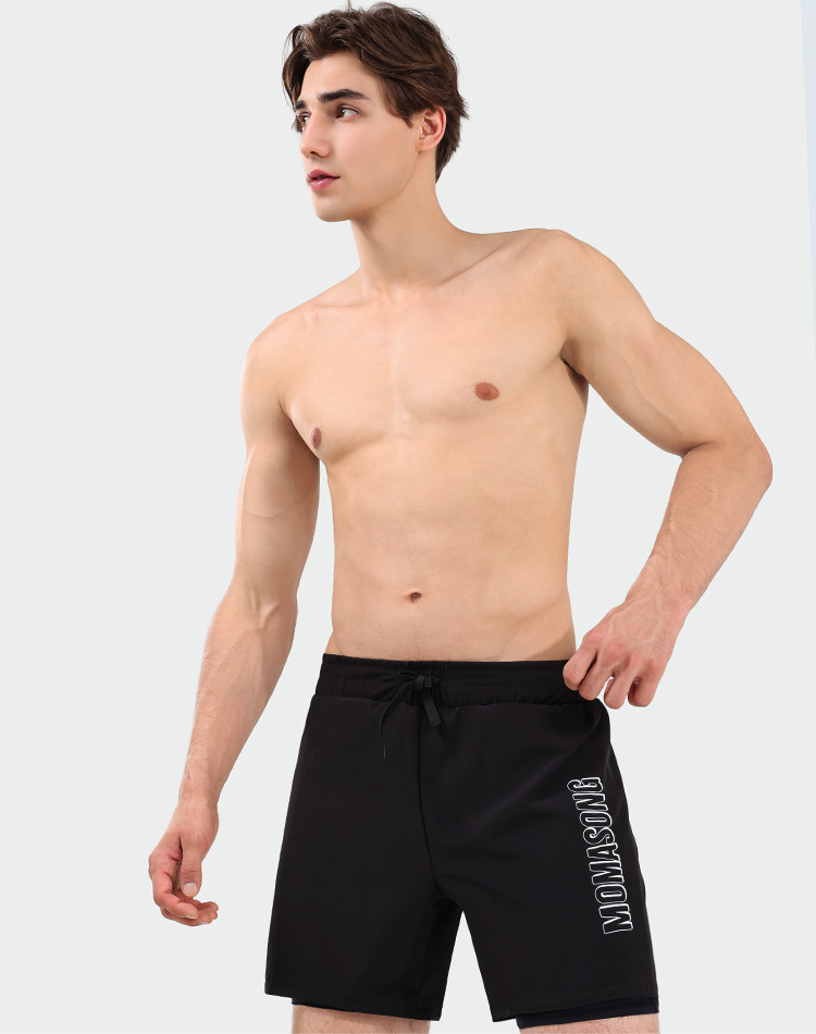 모마 송 남자 수영 트렁크 안티 당황 더블 레이어 느슨한 수영 트렁크 세트 5 점 비치 팬츠 온천 수영복스토어 가기