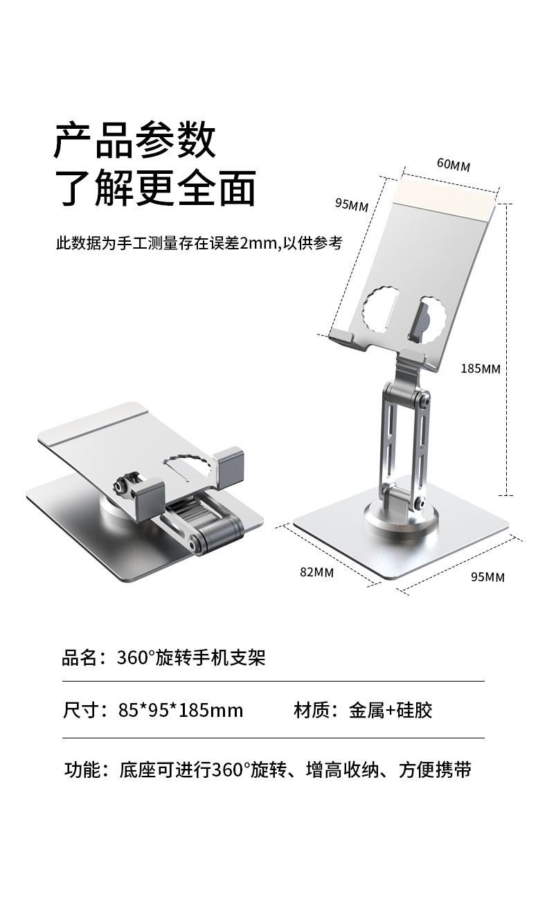 공장 알루미늄 합금 금속 휴대 전화 홀더 사용자 정의 데스크탑 휴대용 회전 게으른 접이식 패 블릿 홀더