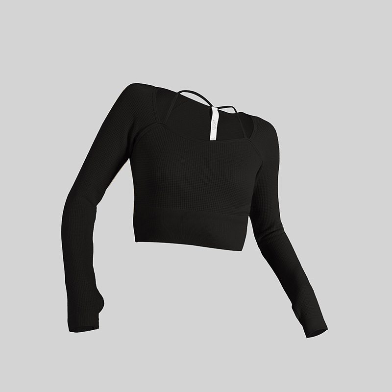 • 와플 스포츠 요가 옷 블랙