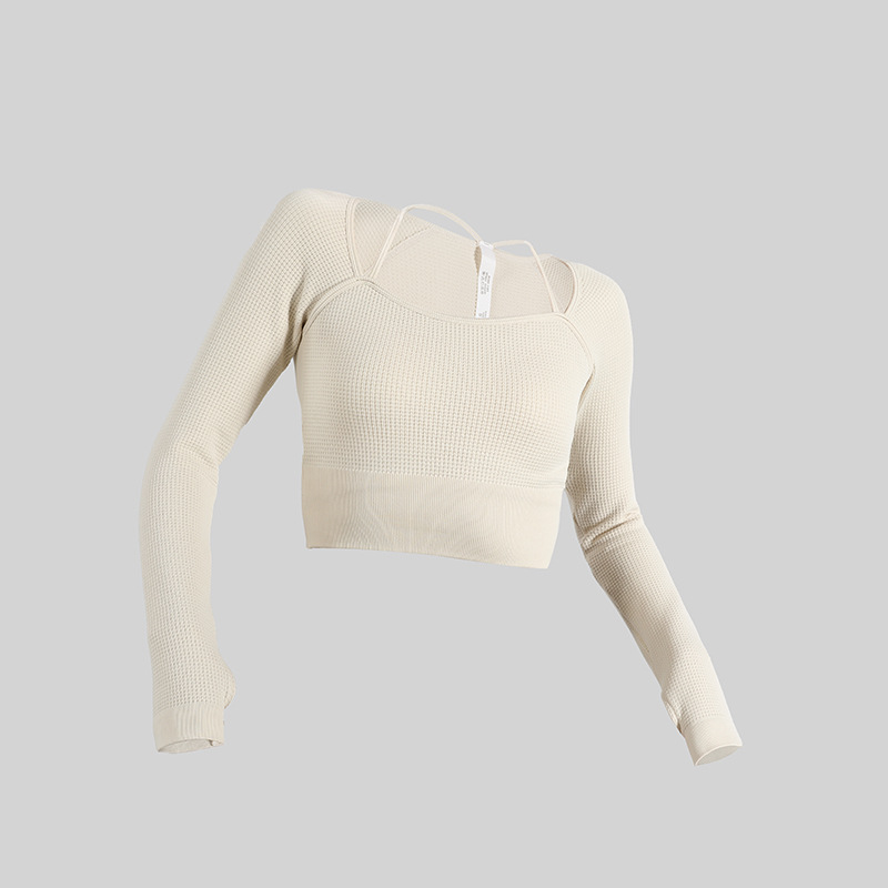 부드러운 탄성 와플 슬리밍 세련된 여성 스포츠 요가 의류 탑 긴 소매 필라테스 훈련 달리기 운동 복