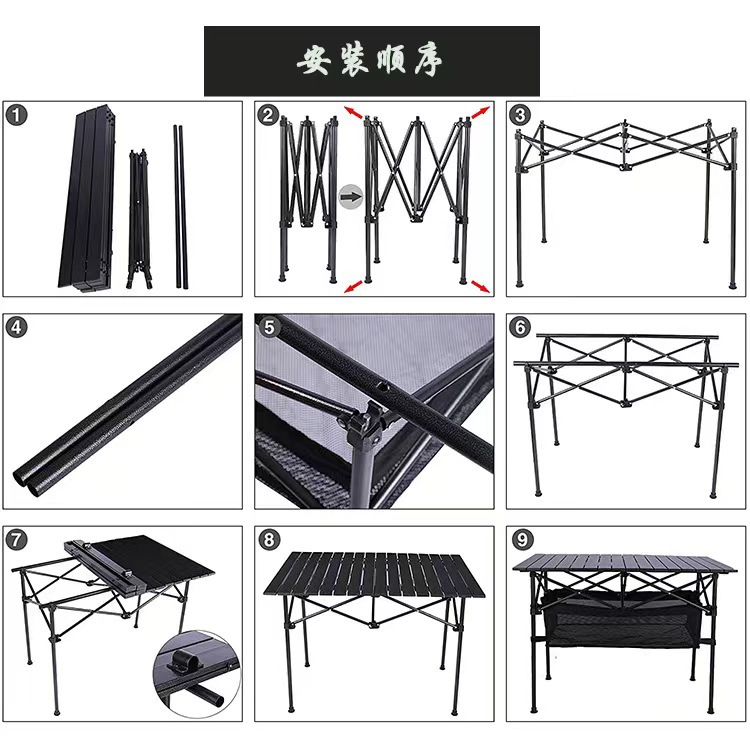 무료 조절 가능한 테이블 야외 접이식 그물 포켓 테이블 탄소 강철 금속 피크닉 접이식 마구간 테이블 자동차 자율 주행 여행스토어 가기