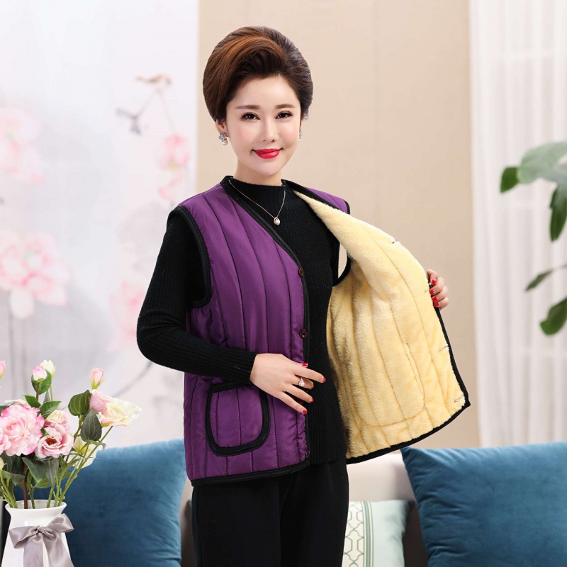 중년 및 노년 여성 조끼, 가을 겨울 조끼, 벨벳 두꺼운 따뜻한 면 조끼, 중년 어머니 의류, 대형 조끼스토어 가기