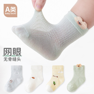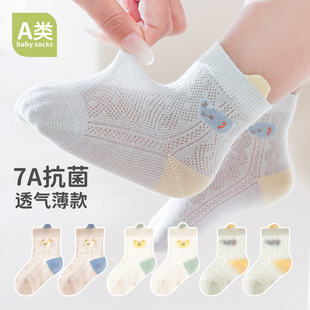 봄 여름 아기 양말, 만화 캐릭터 귀여운 얇은 아기 양말, 메쉬 무봉제 중목면 양말, 통기성 좋은 여아용스토어 가기