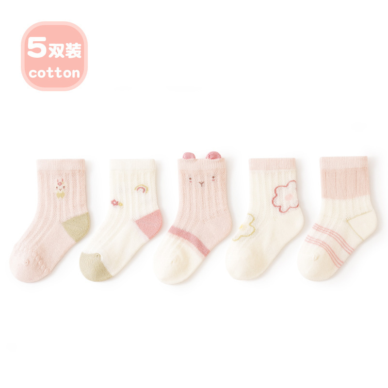 봄 여름 아기 양말, 만화 캐릭터 귀여운 얇은 아기 양말, 메쉬 무봉제 중목면 양말, 통기성 좋은 여아용