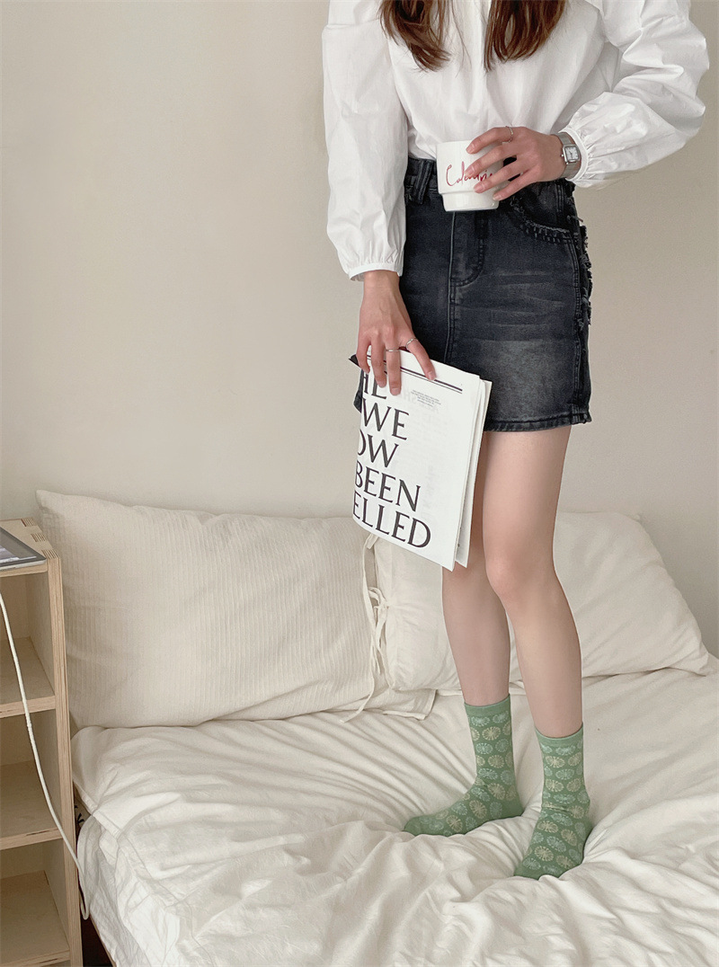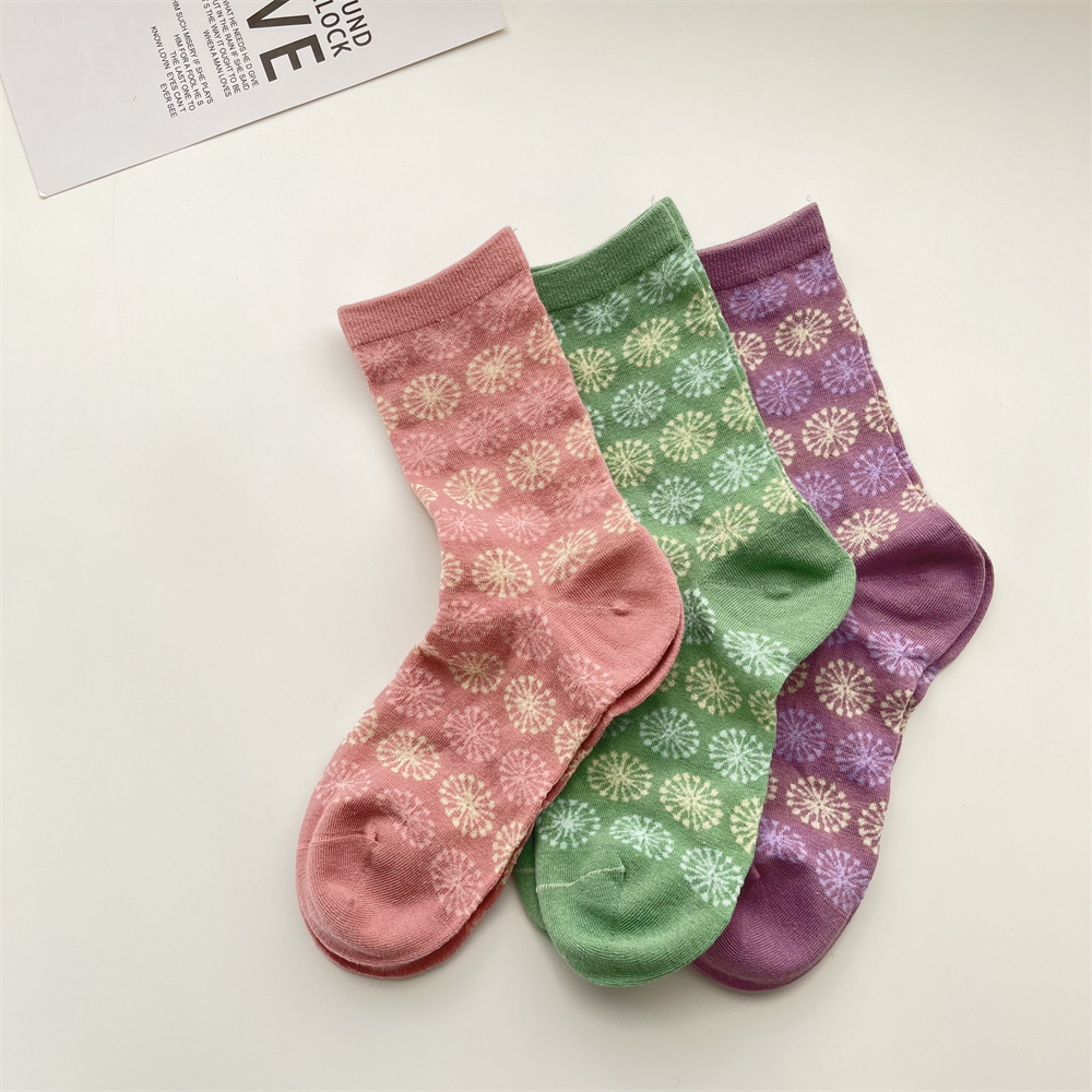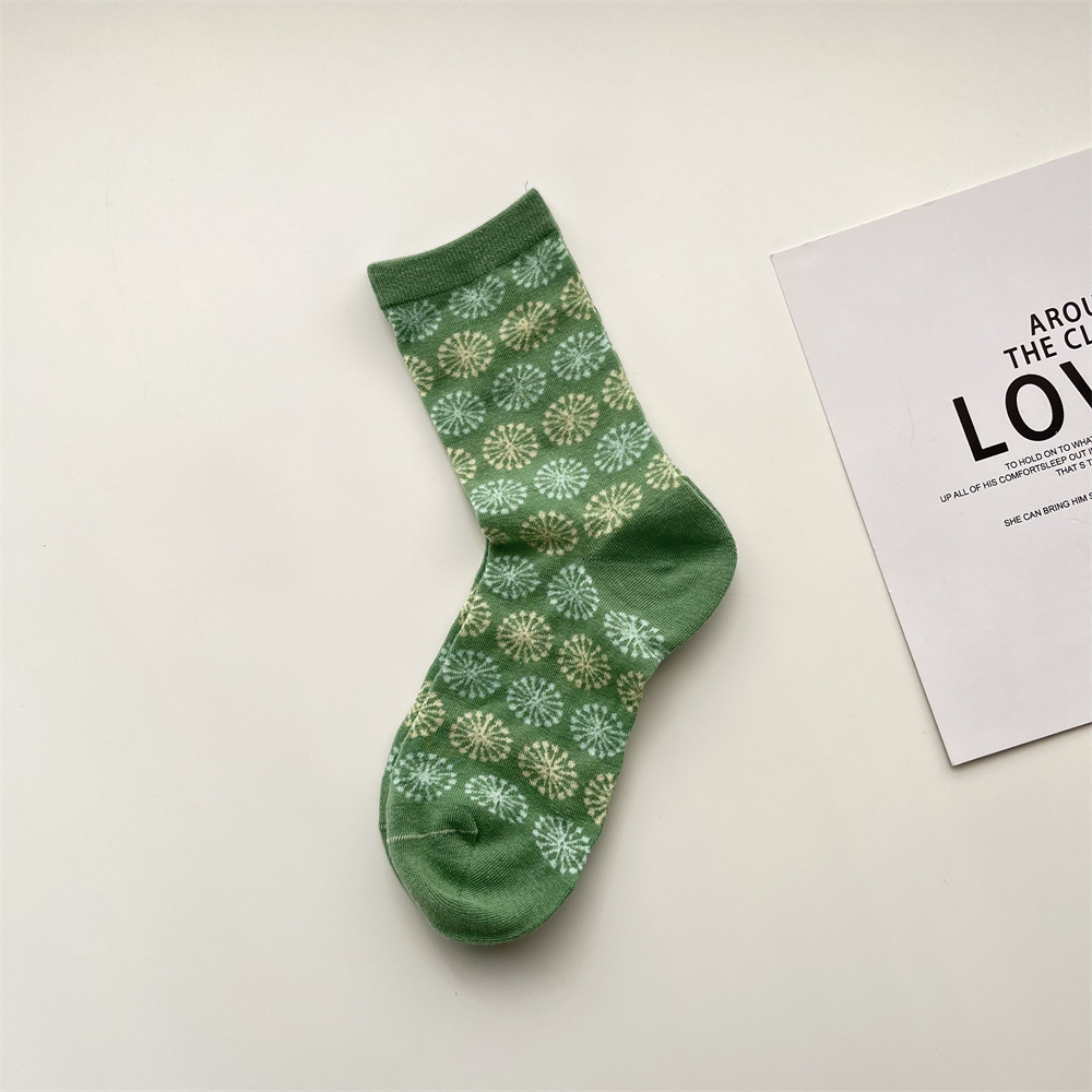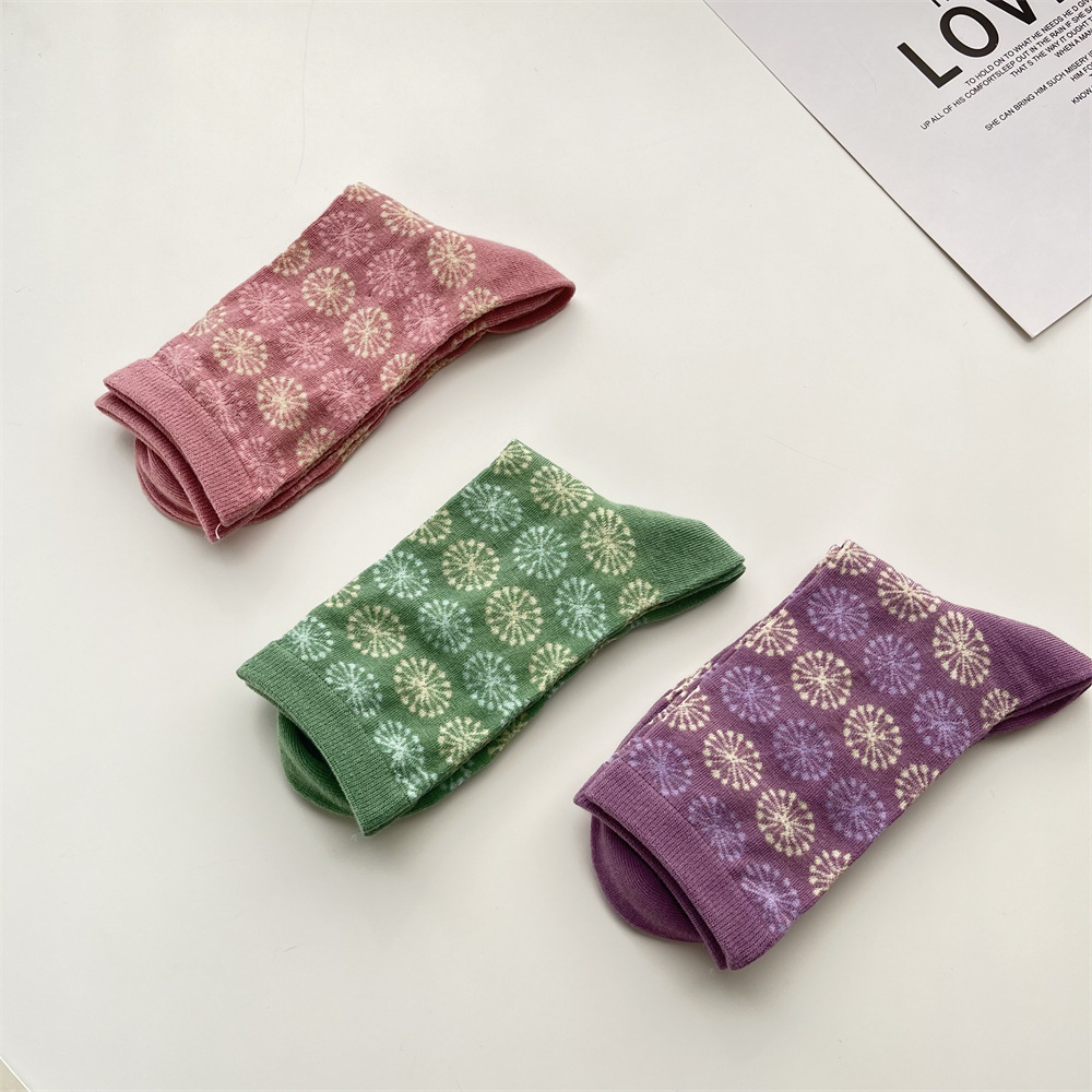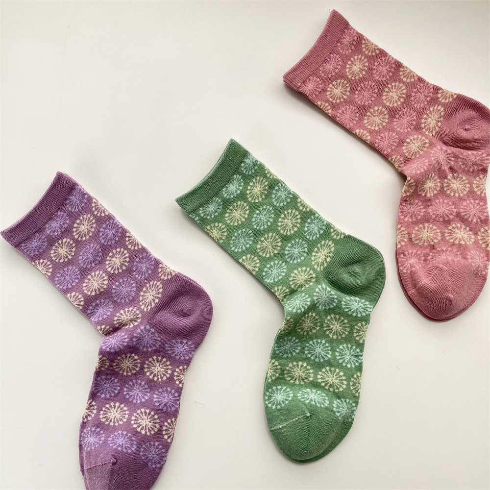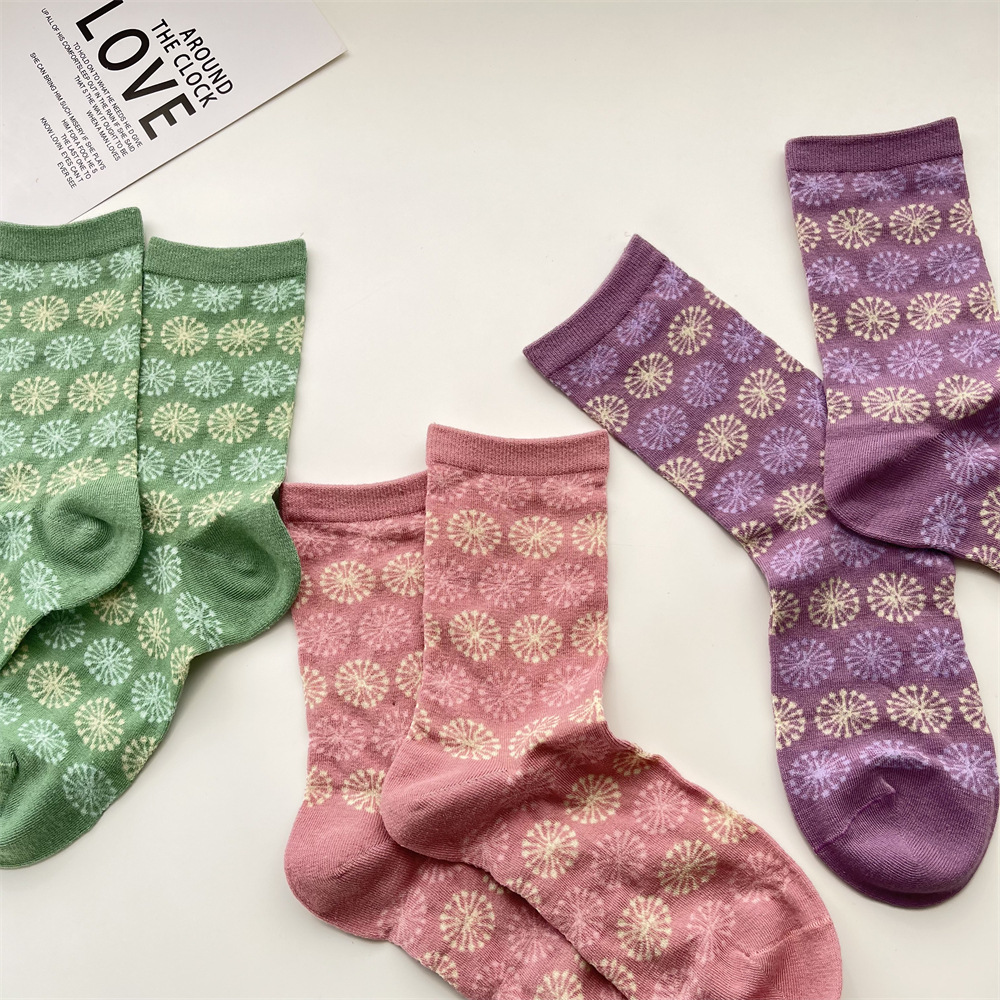 봄과 여름 새로운 모란 디 컬러 양말 여성 일본 복고풍 꽃 중간 종아리 길이 양말 한국식 서클 패턴 뼈없는 면 양말스토어 가기