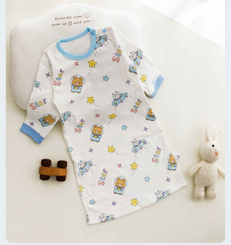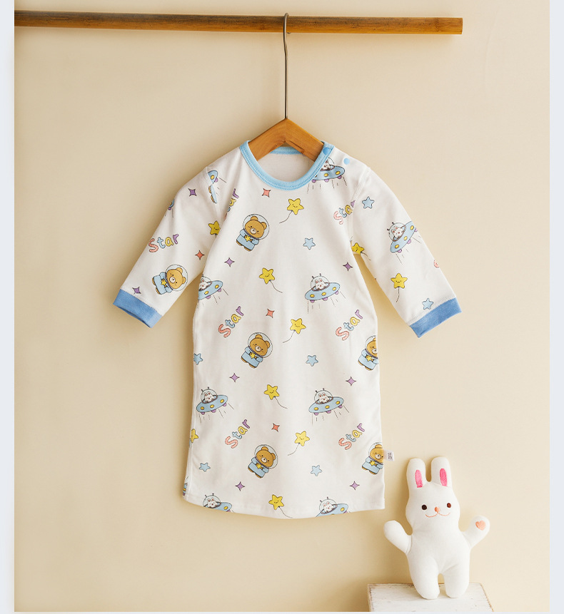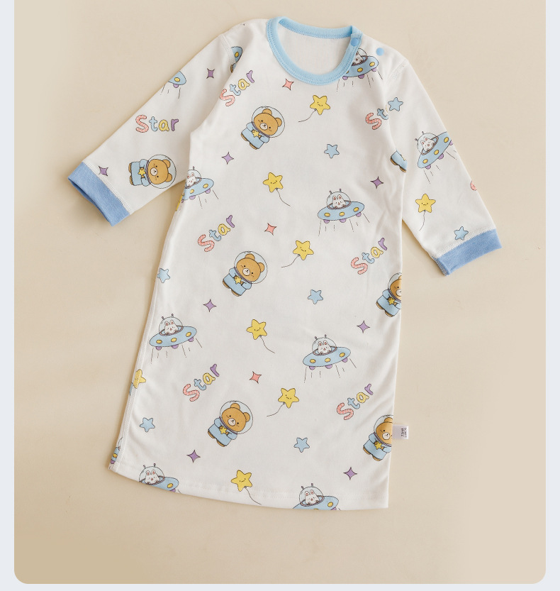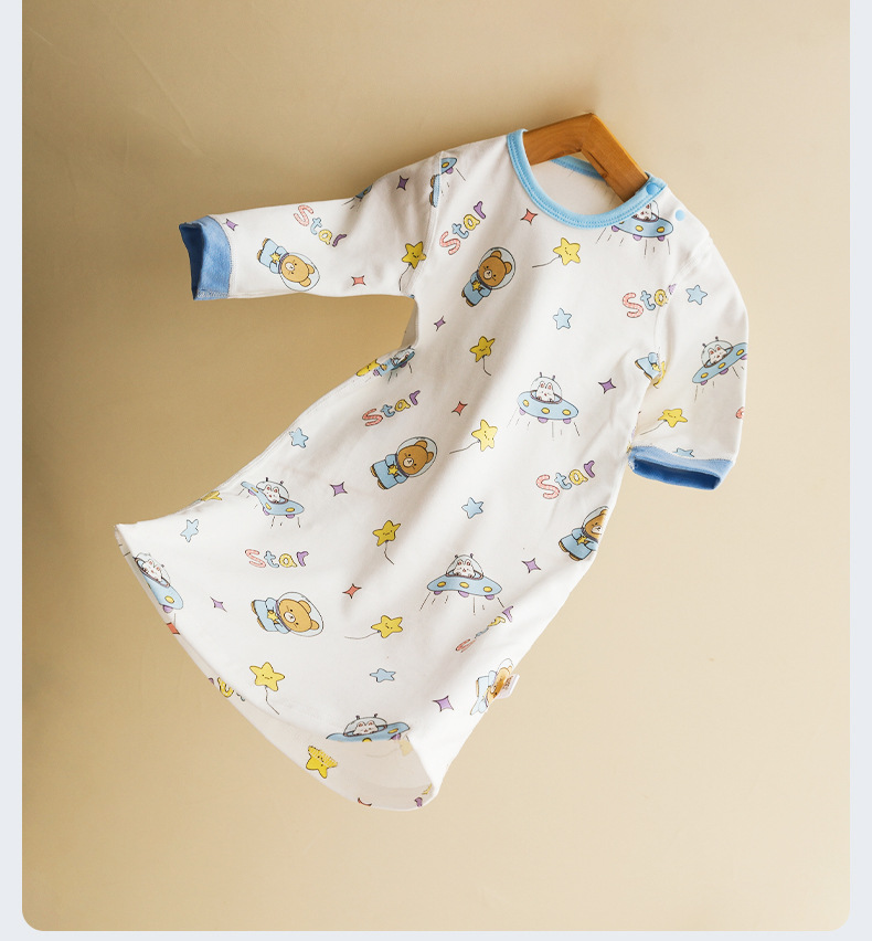 婴儿无骨睡裙纯棉长袖睡袍家居服 新生儿睡衣空调服防踢被四季款