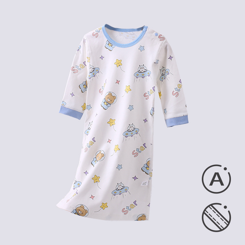 아기 뼈없는 나이트 드레스 순수한면 긴팔 잠옷 홈 의류 신생아 파자마 에어컨 옷 안티 킥 퀼트 사계절