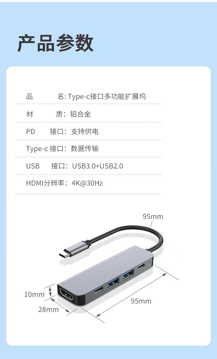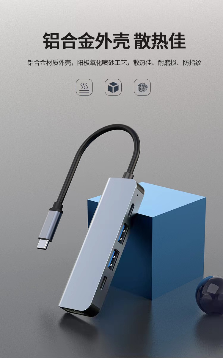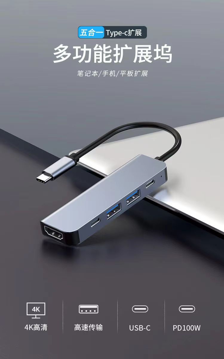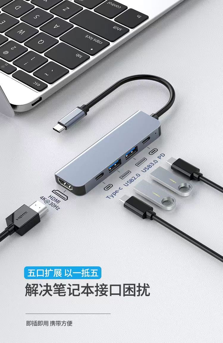 유형 c 5 대 1 도킹 스테이션 HDMI 노트북 USB 멀티 포트 허브 알루미늄 합금 허브 프로젝션 화면 확장 도크스토어 가기