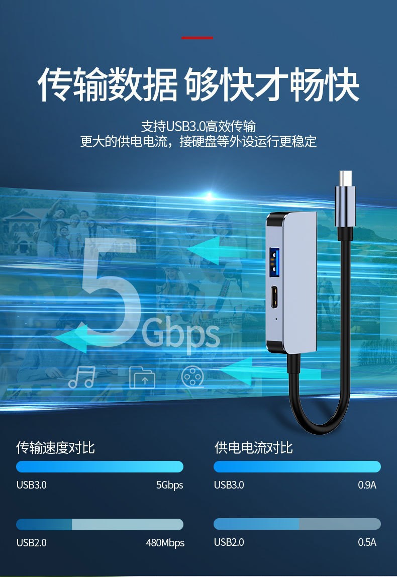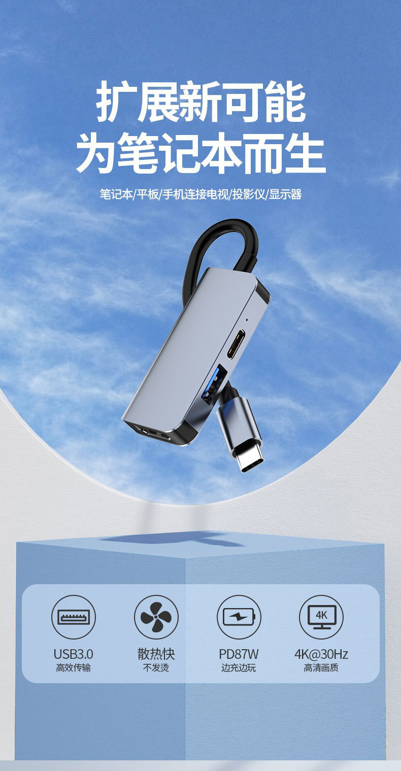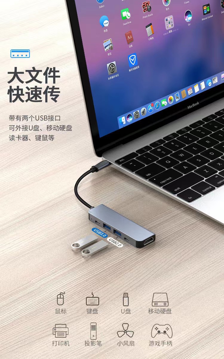 유형 c 5 대 1 도킹 스테이션 HDMI 노트북 USB 멀티 포트 허브 알루미늄 합금 허브 프로젝션 화면 확장 도크스토어 가기