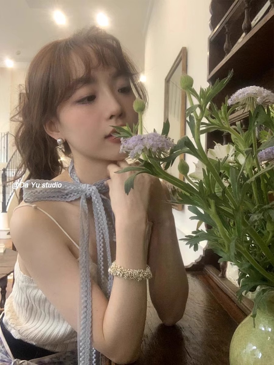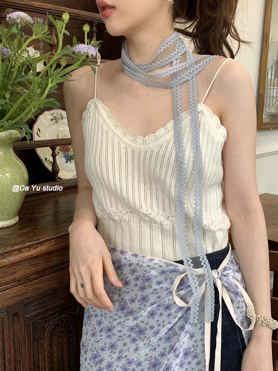 한국 in 빈티지 레이스 긴 실크 스카프 여성 봄과 여름 분위기 장식 리본 다기능 넥타이 패션