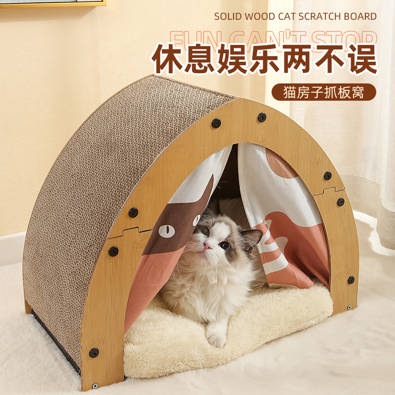 • 고양이 스크래치 보드 집-삼각형 문 커튼