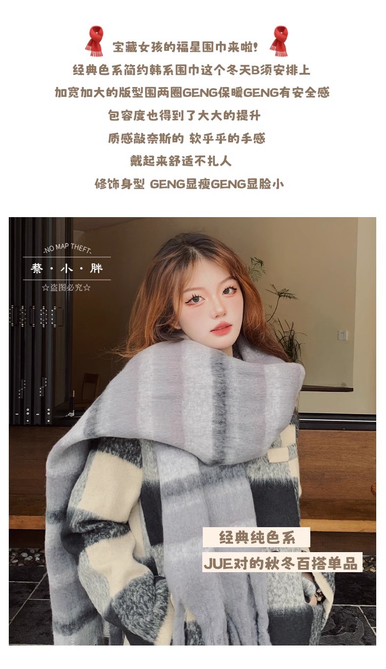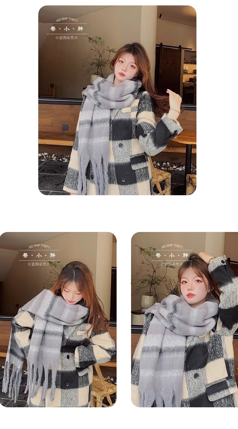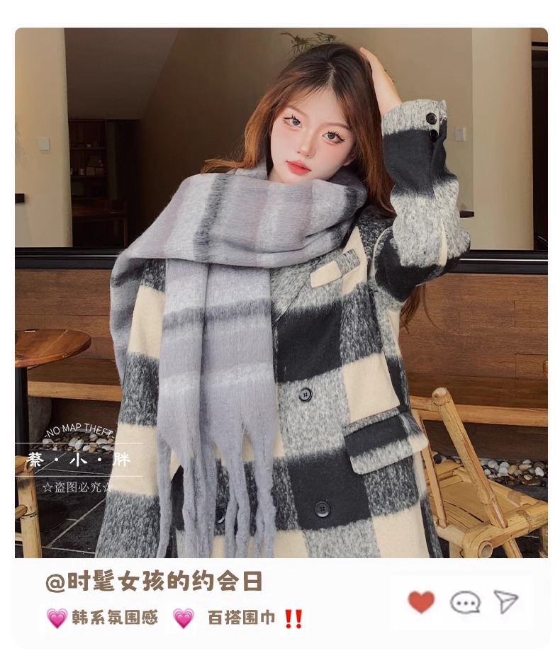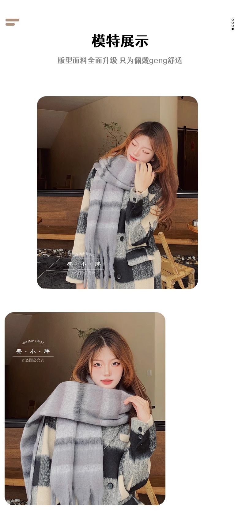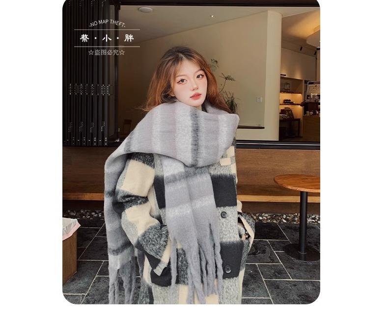 새로운 스타일의 따뜻한 두꺼운 양모 니트 체크 무늬 스카프 여성용 올 매치 스카프 여성용 그라디언트 컬러 가시 스카프스토어 가기