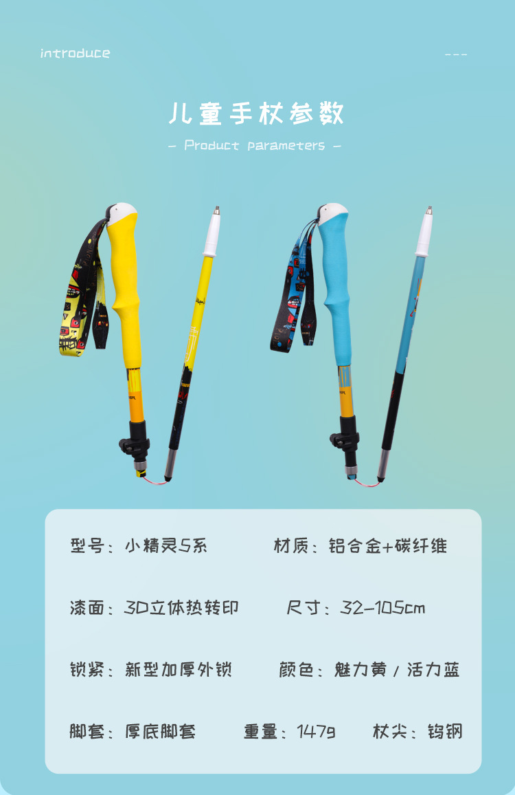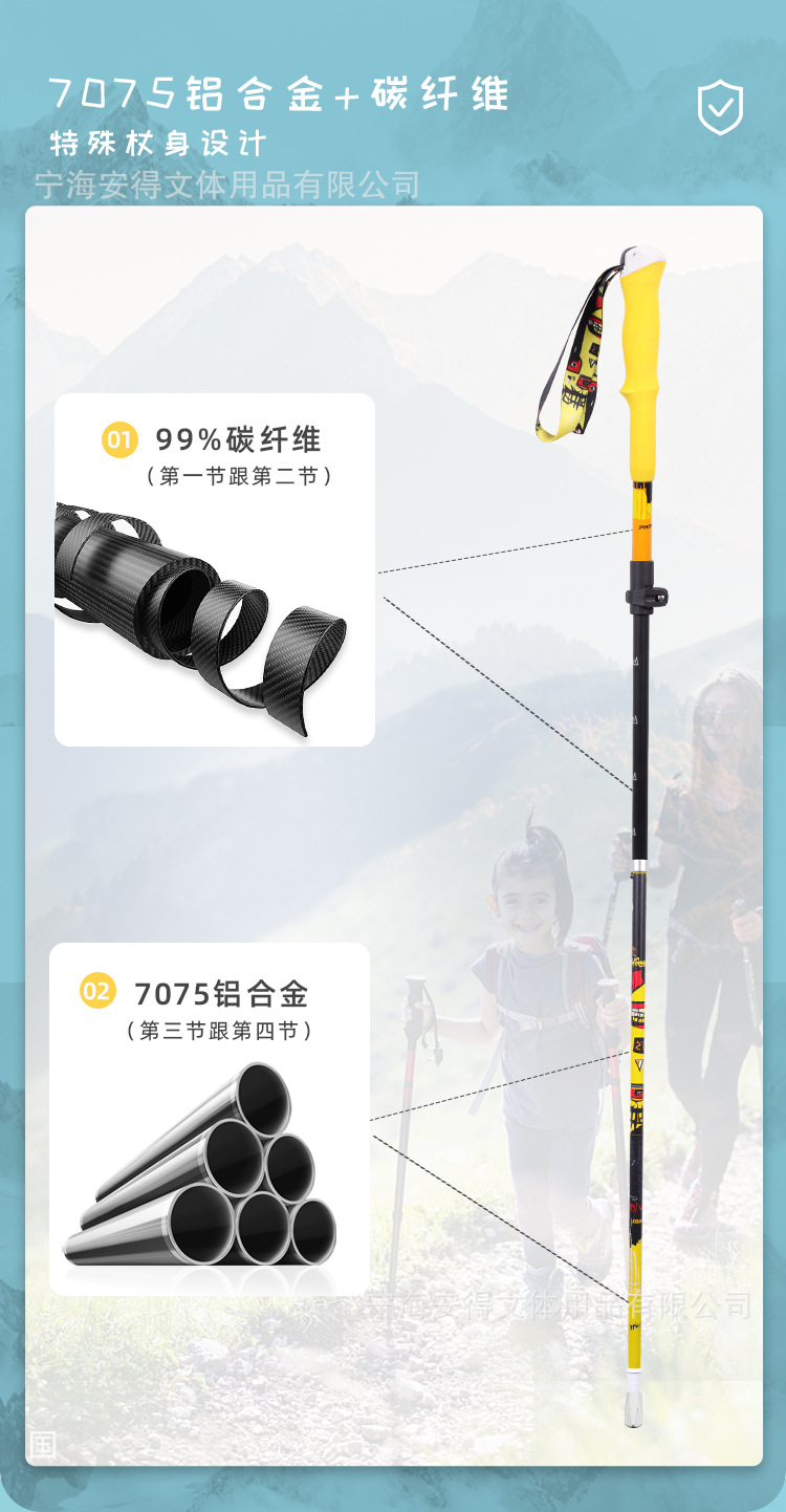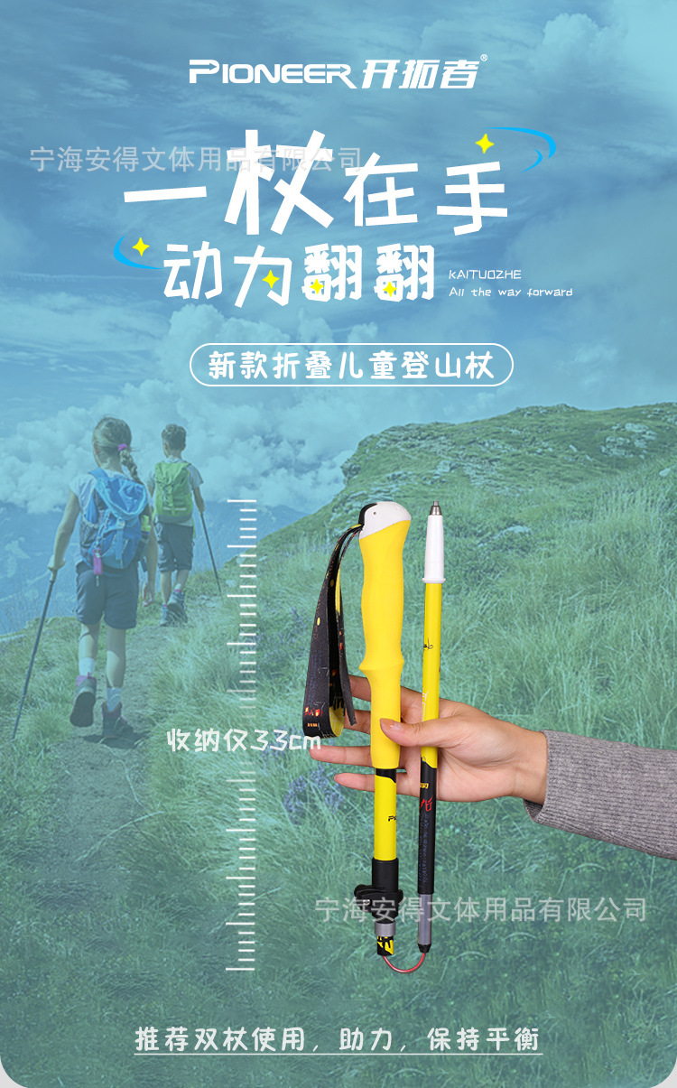 개척자 2024 새로운 어린이 접이식 트레킹 극 초경량 외부 잠금 개폐식 워킹 스틱 스키 여행 장비스토어 가기
