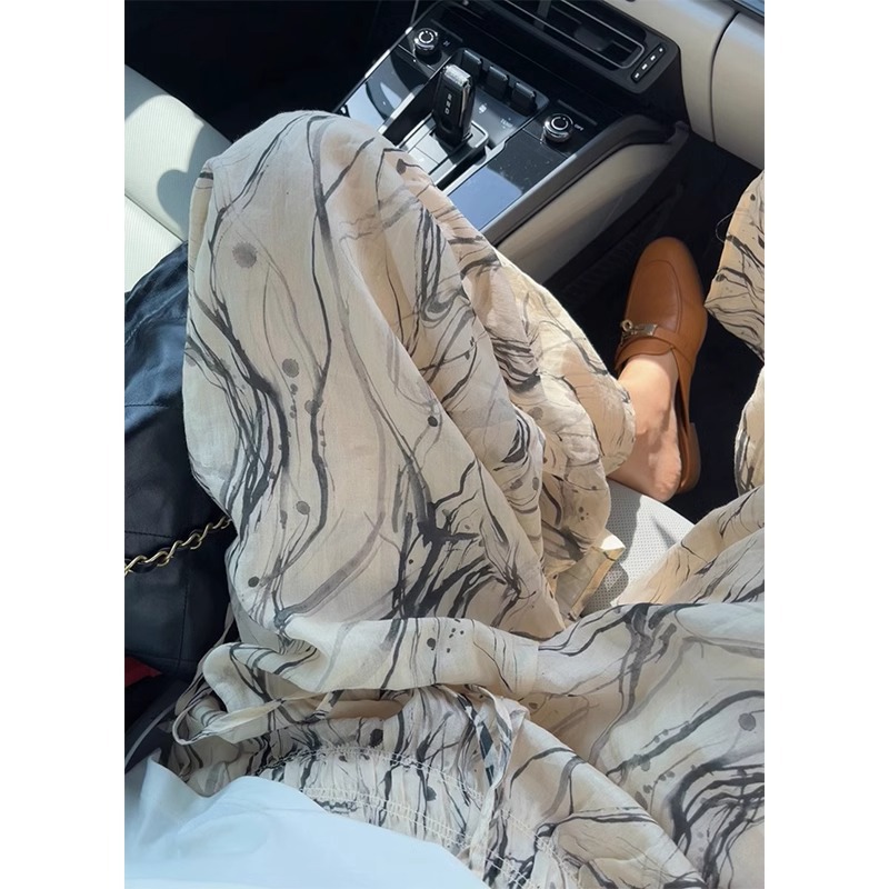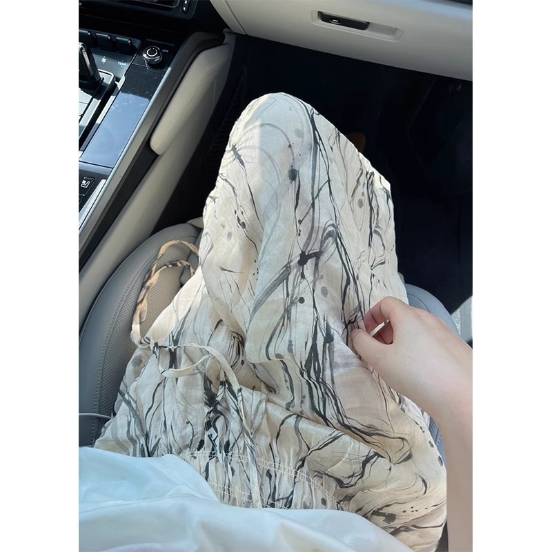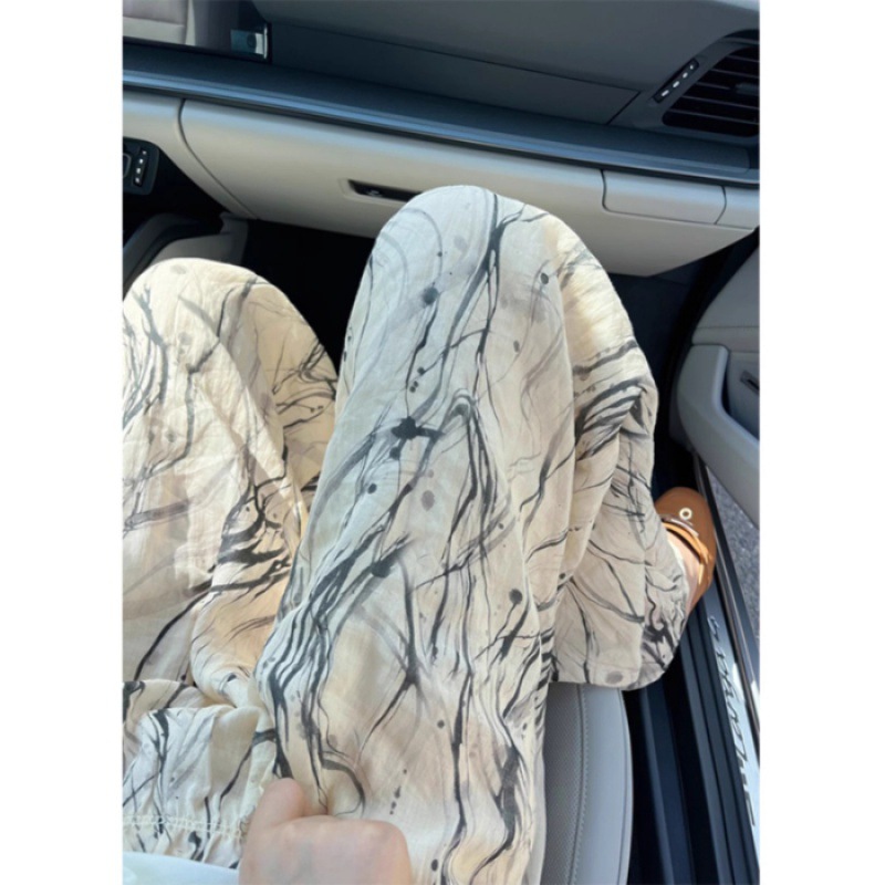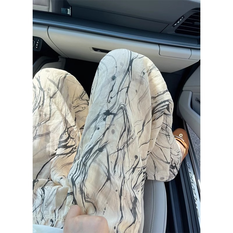 여성을위한 잉크 넥타이 염색 넓은 다리 바지 여름 얇은 높은 허리 드레이핑 새로운 중국 스타일의 게으른 캐주얼 바지스토어 가기