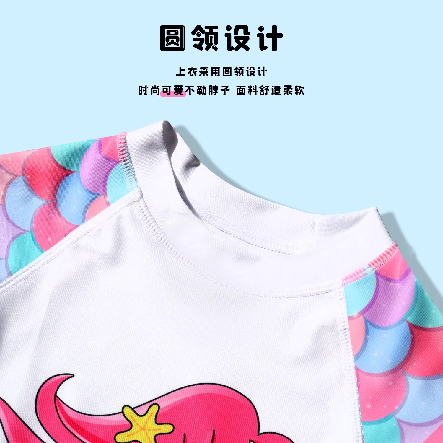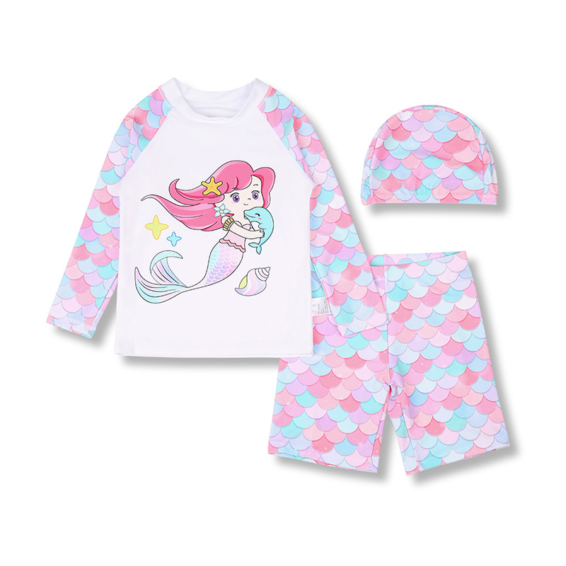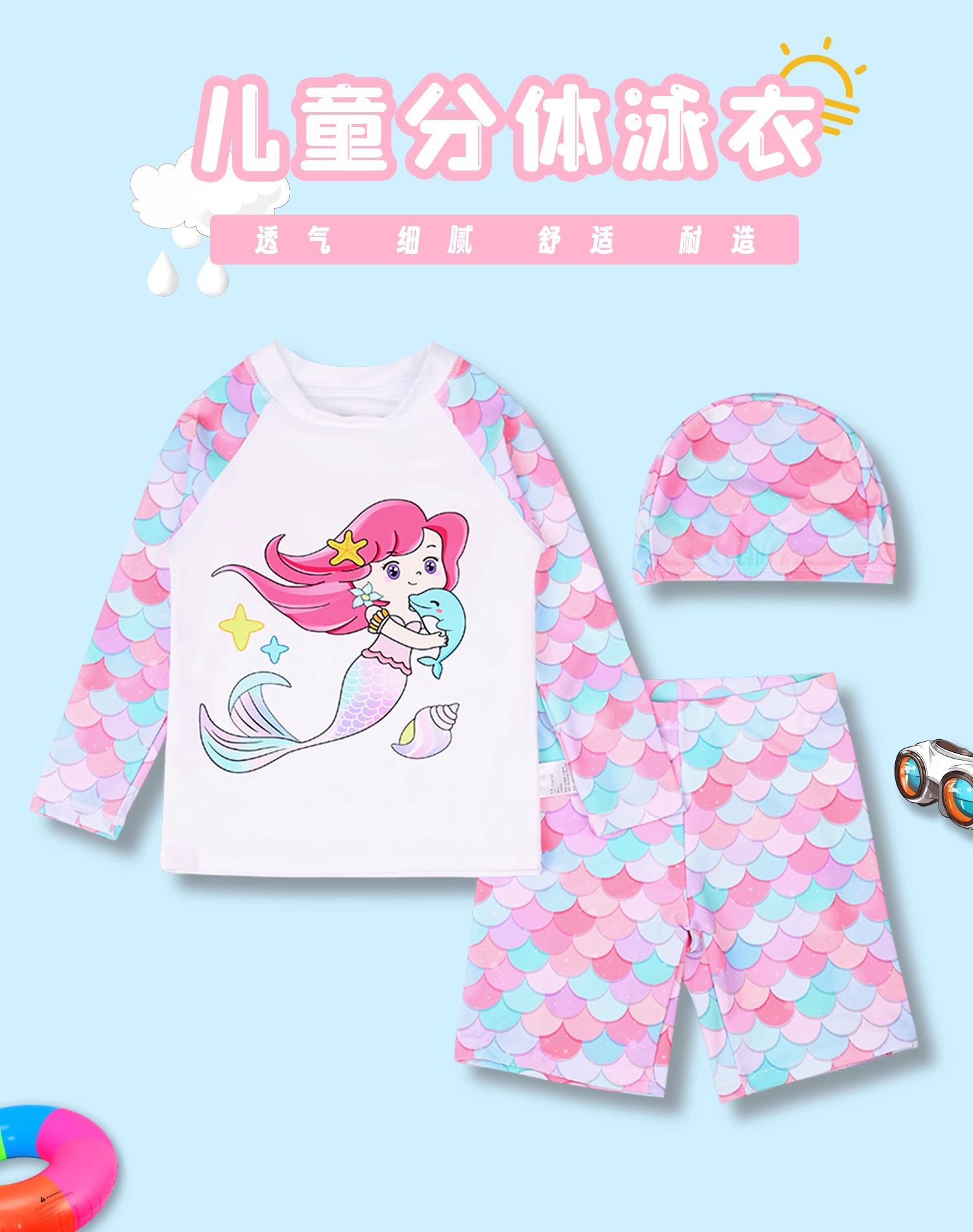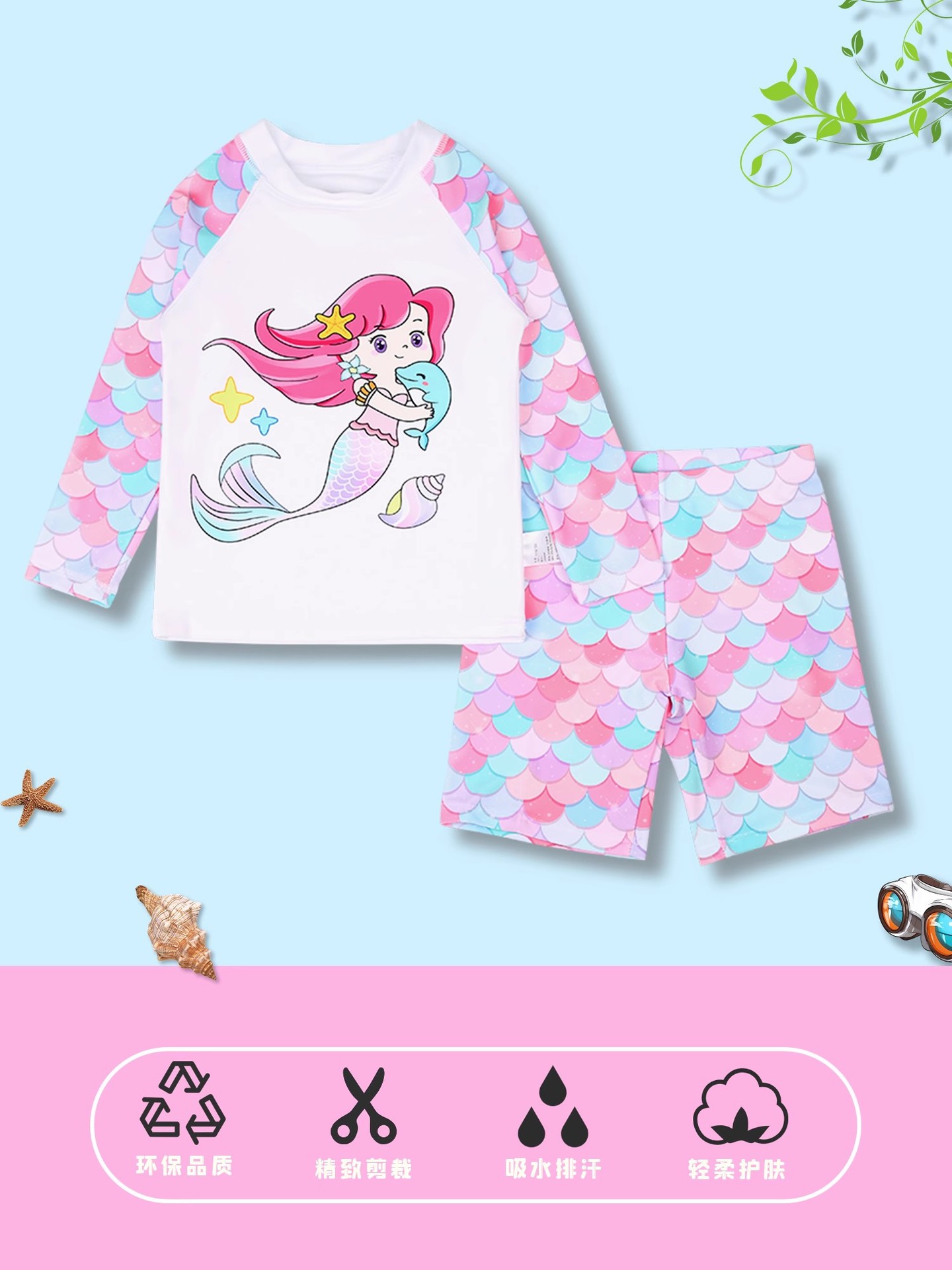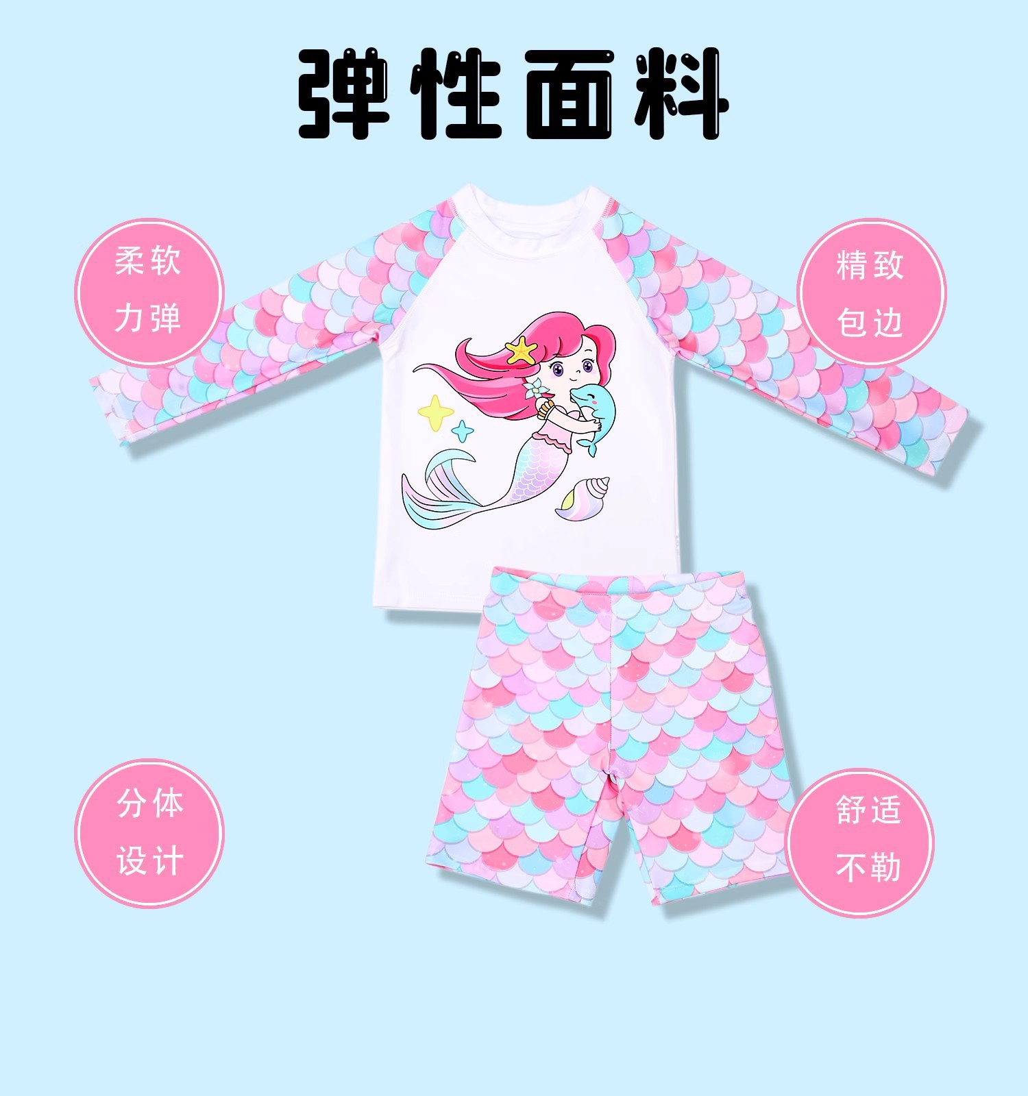 어린이 수영복 여자 수영복 인어 분할 세트 긴 소매 선 스크린 생선 비늘 반바지 빠른 건조 수영복 세트
