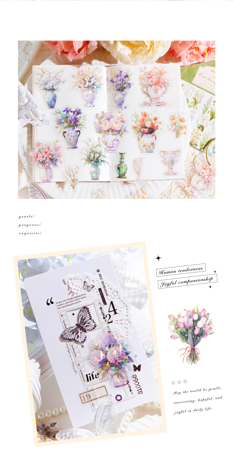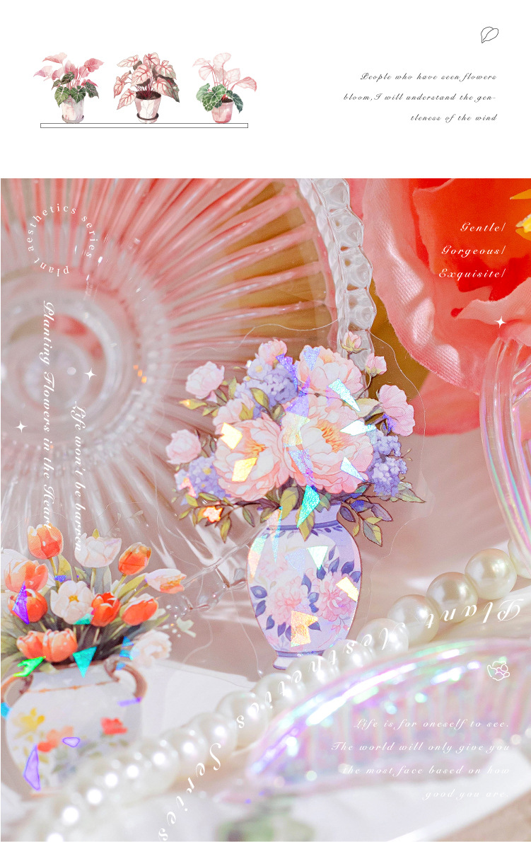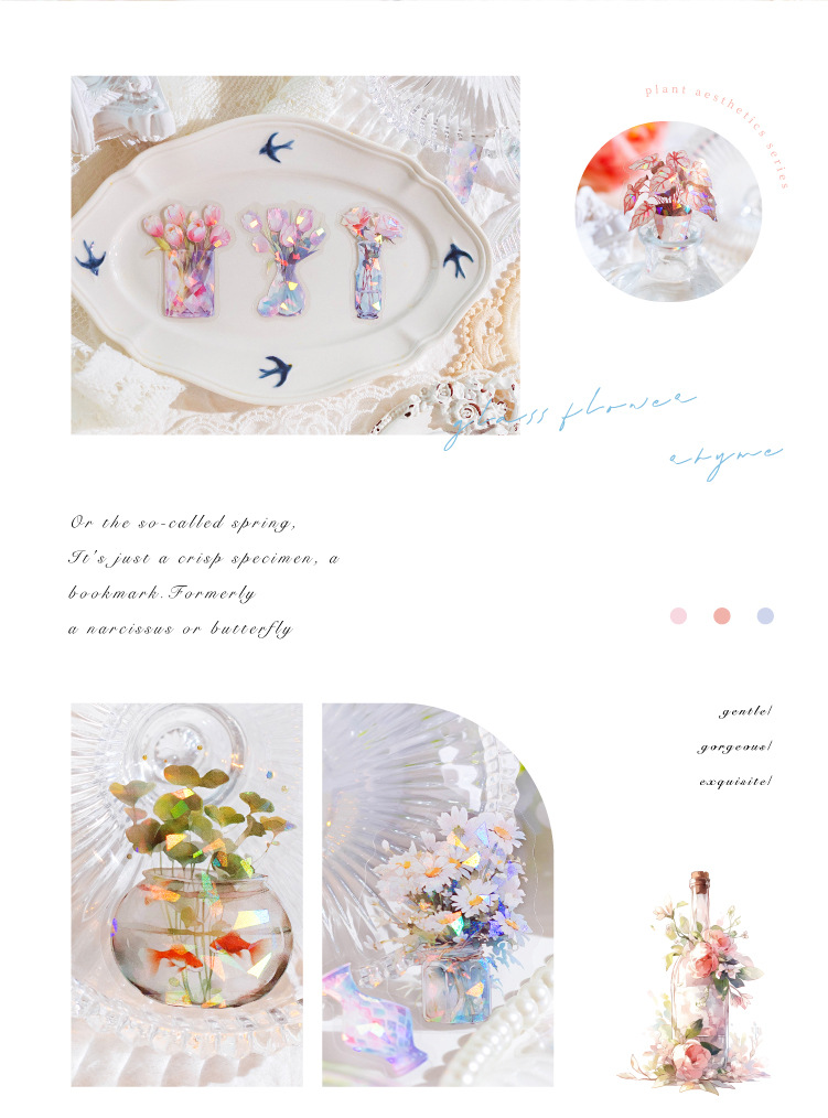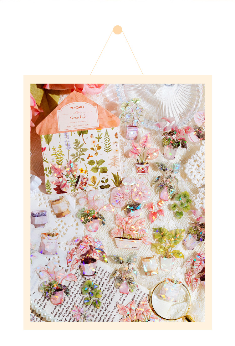 모모 얼음 크리스탈 PET 스티커 패키지 식물 미학 시리즈 저널 DIY 장식 스티커 기본 소재 스티커 6 모델