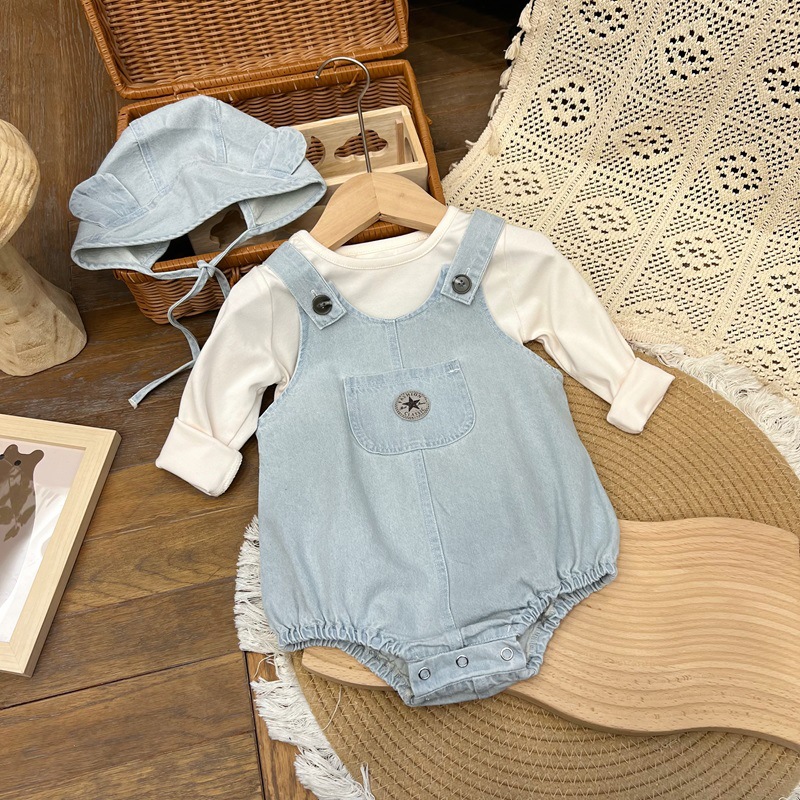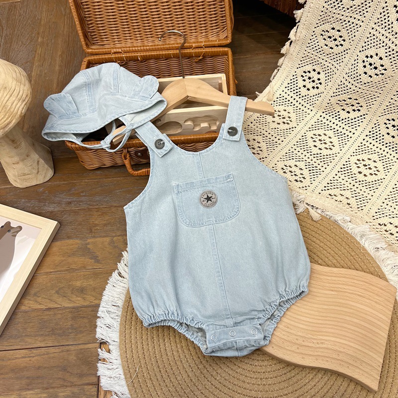 어린이 데님 멜빵 2024 여름 새 패키지 방귀 옷 봄 아기 데님 스트랩 등반 옷스토어 가기