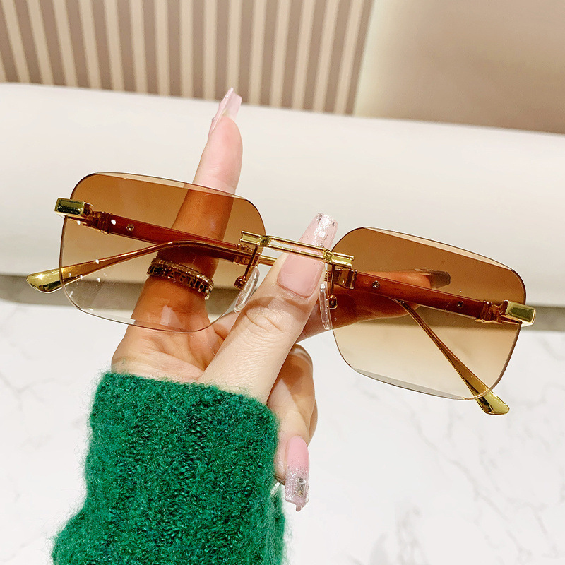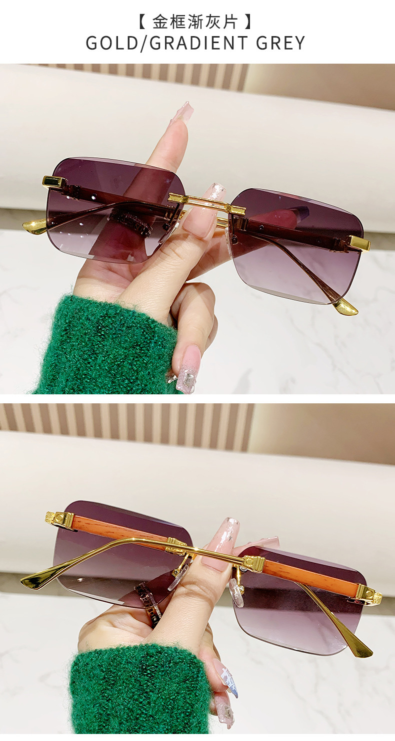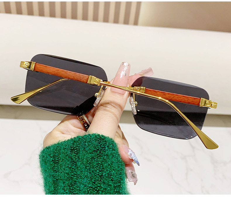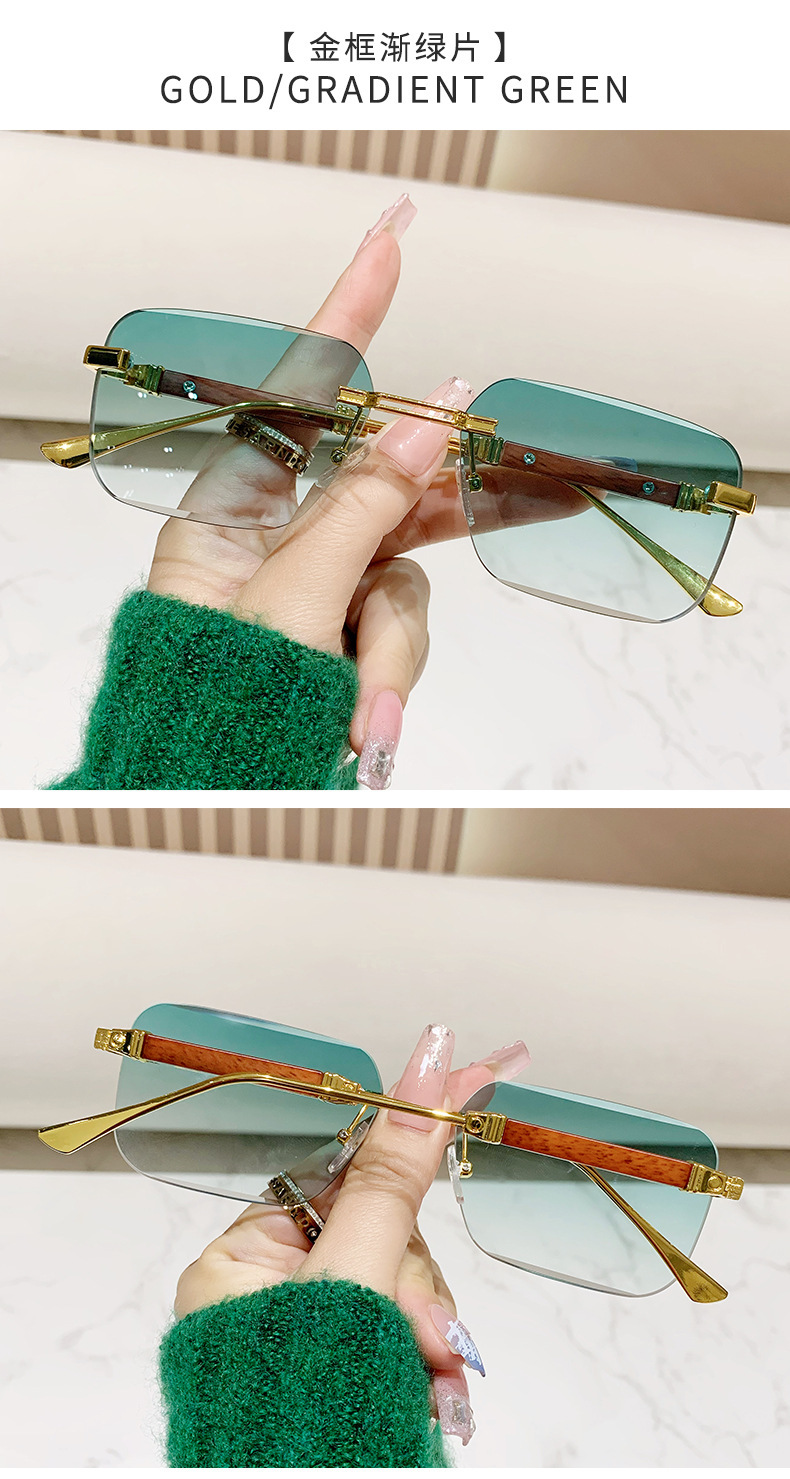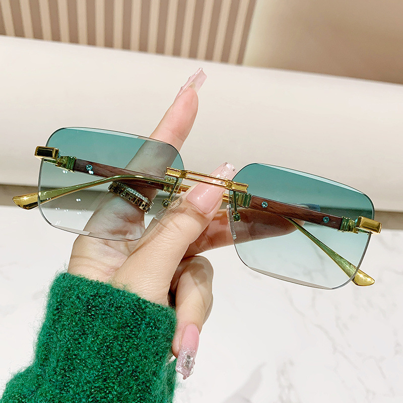 새로운 패션 프레임리스 선글라스 남성 마린 컷 엣지 우드 그레인 안경 다리 스퀘어 선글라스 여성 패션 국경 도매