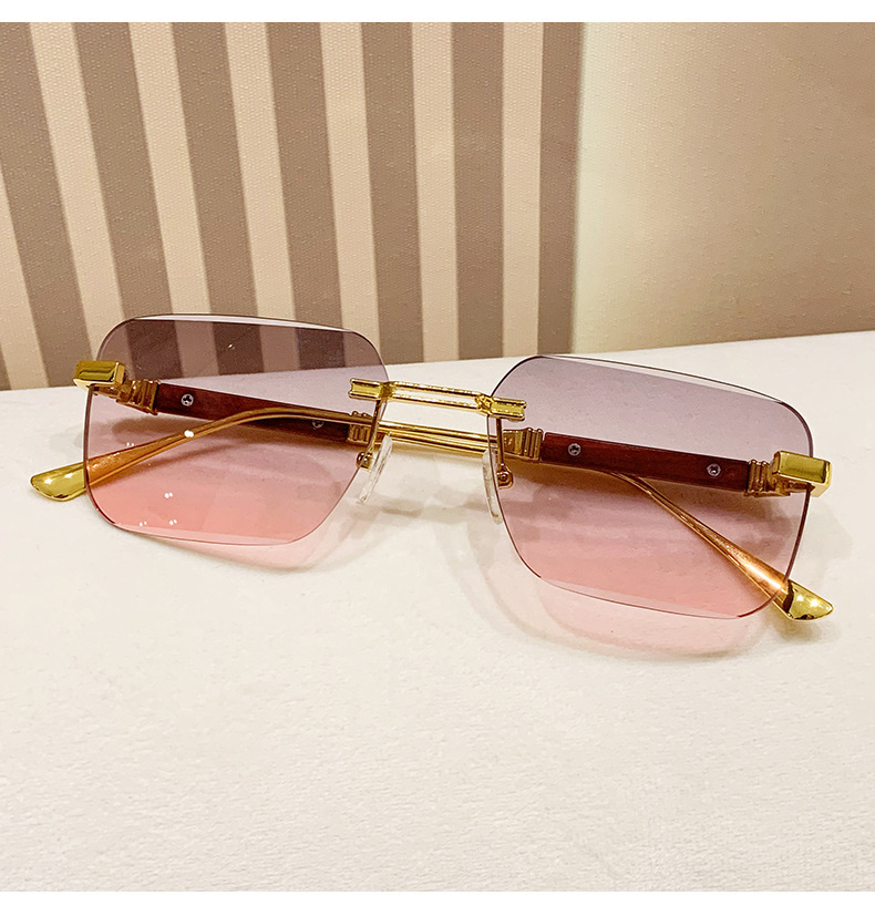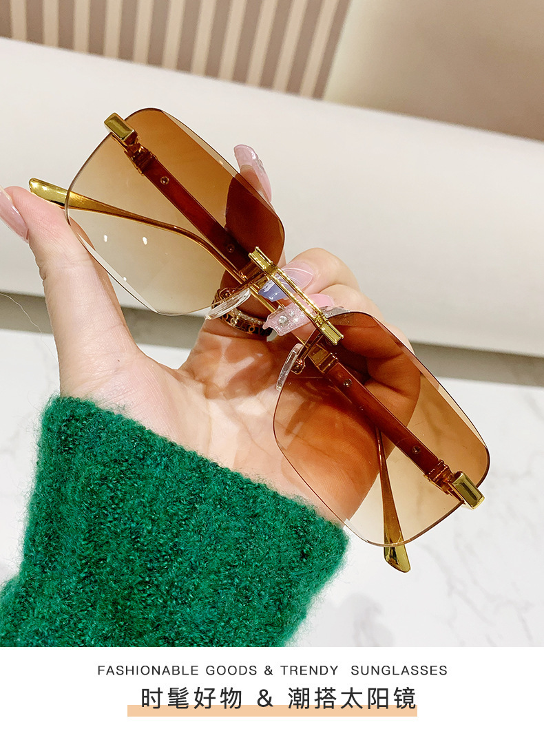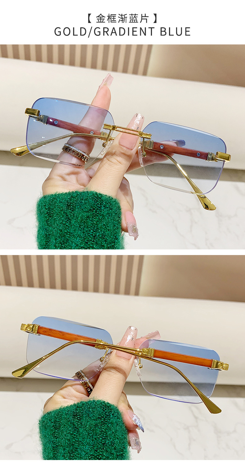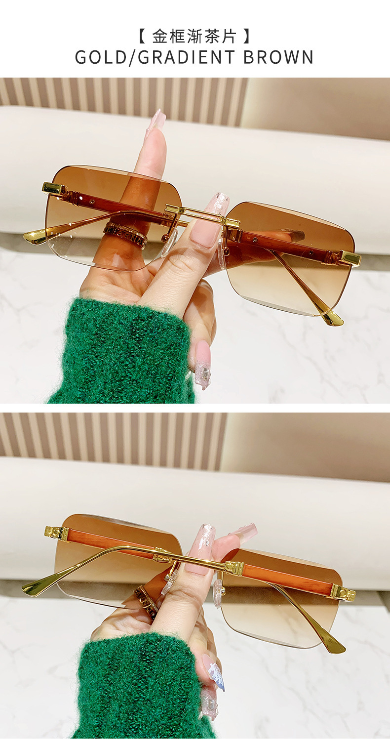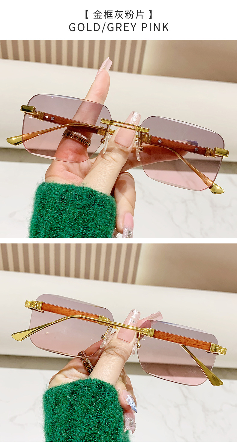 새로운 패션 프레임리스 선글라스 남성 마린 컷 엣지 우드 그레인 안경 다리 스퀘어 선글라스 여성 패션 국경 도매