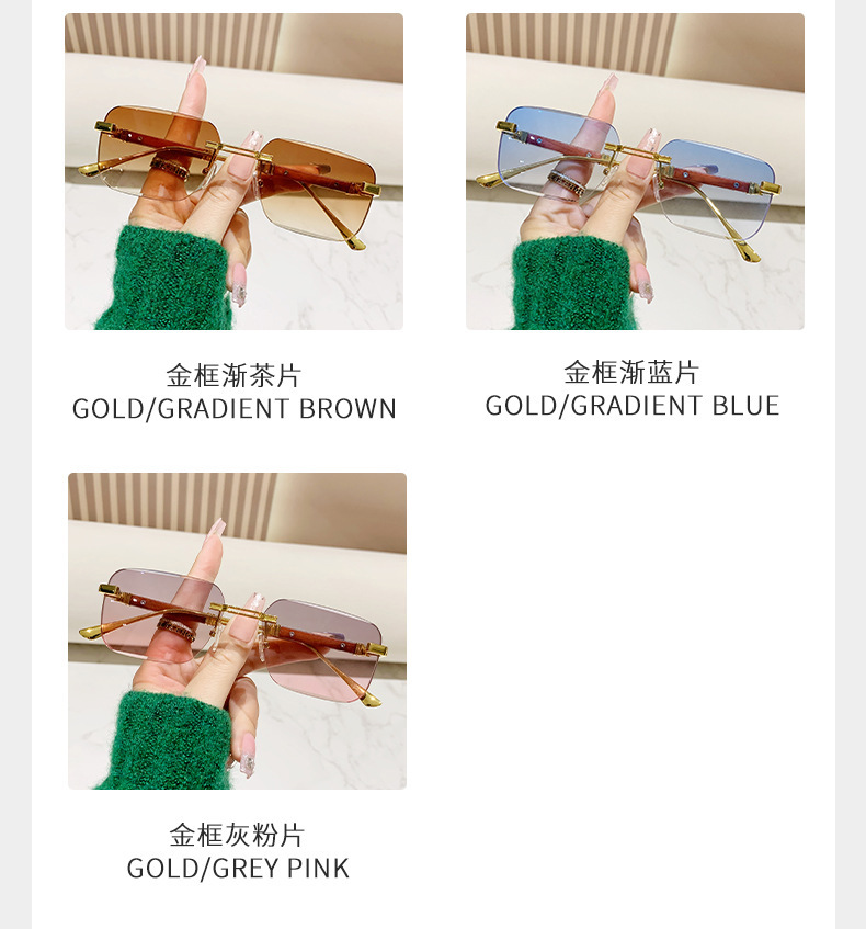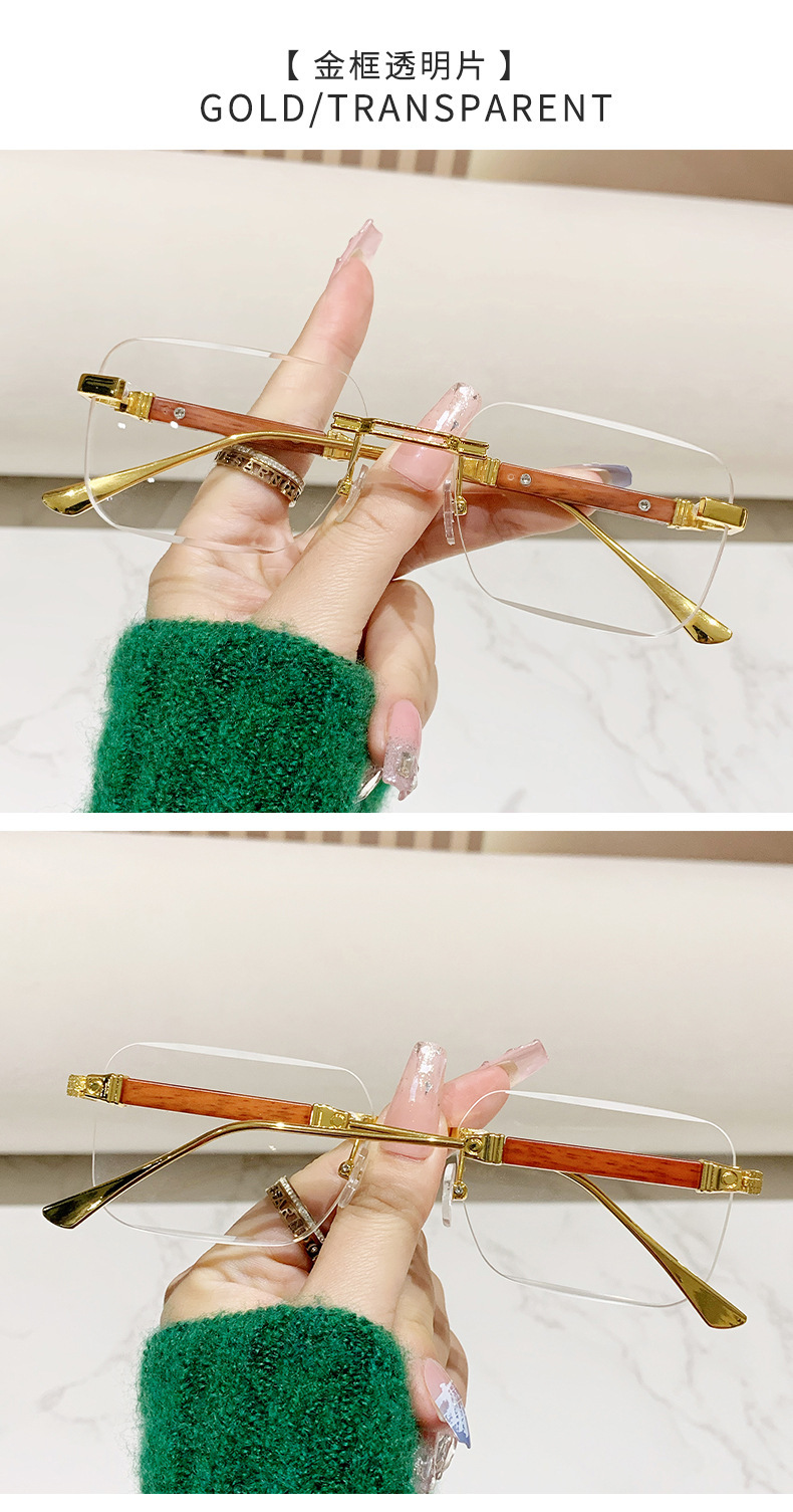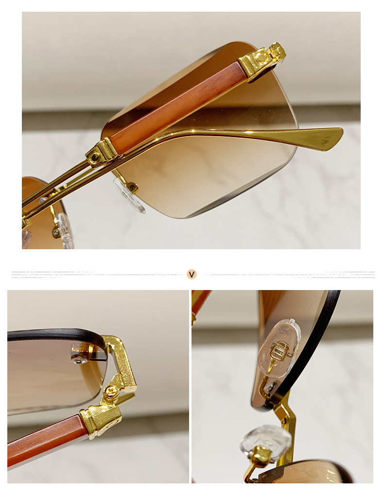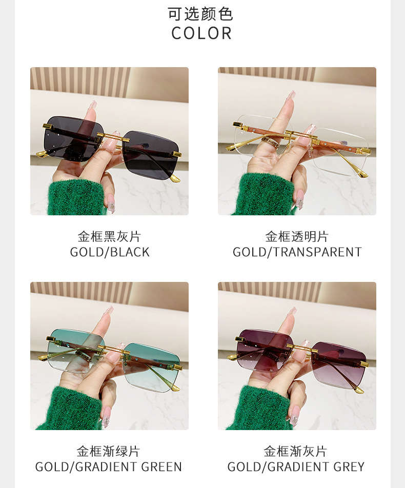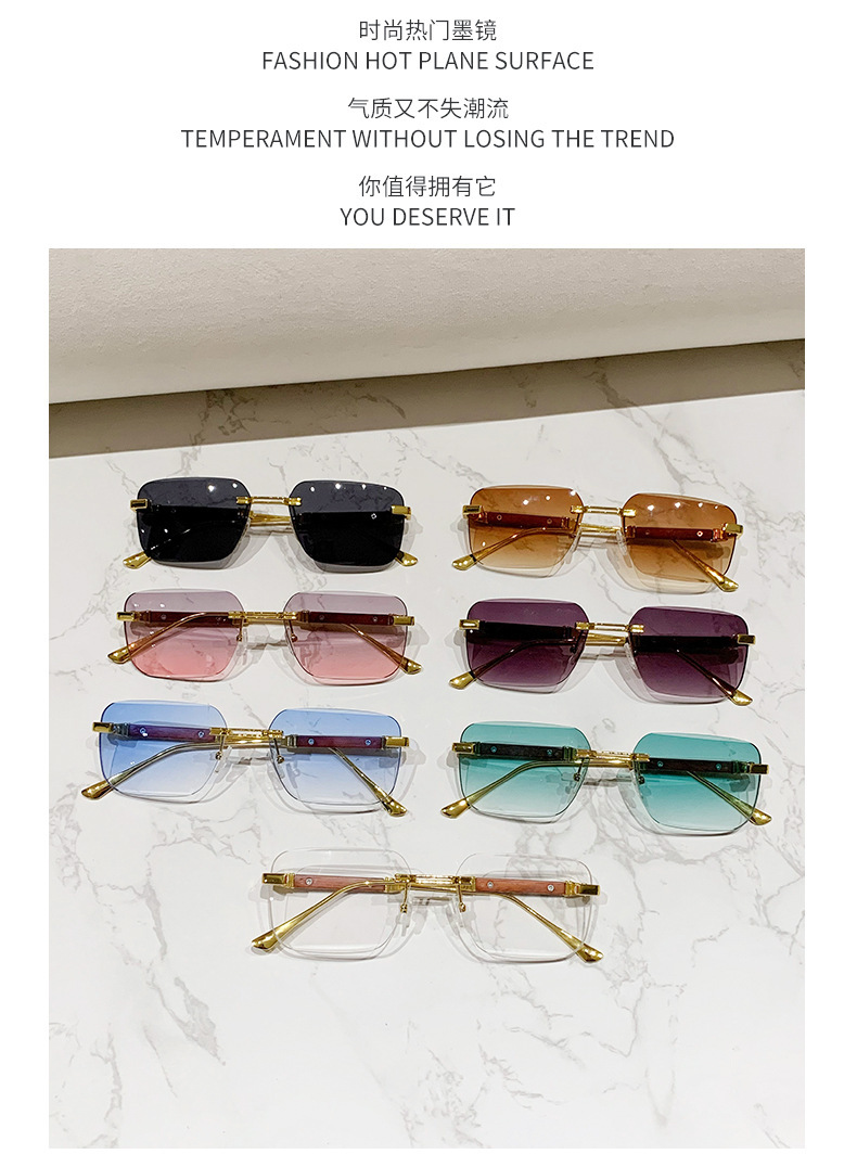 새로운 패션 프레임리스 선글라스 남성 마린 컷 엣지 우드 그레인 안경 다리 스퀘어 선글라스 여성 패션 국경 도매