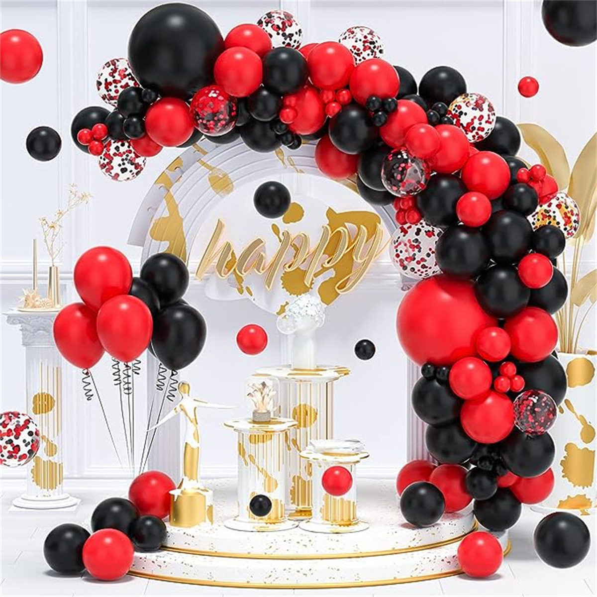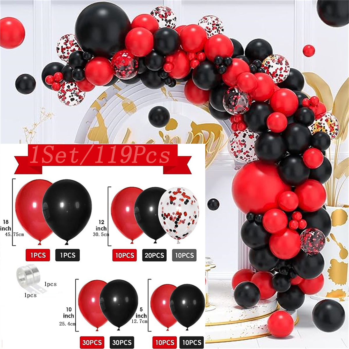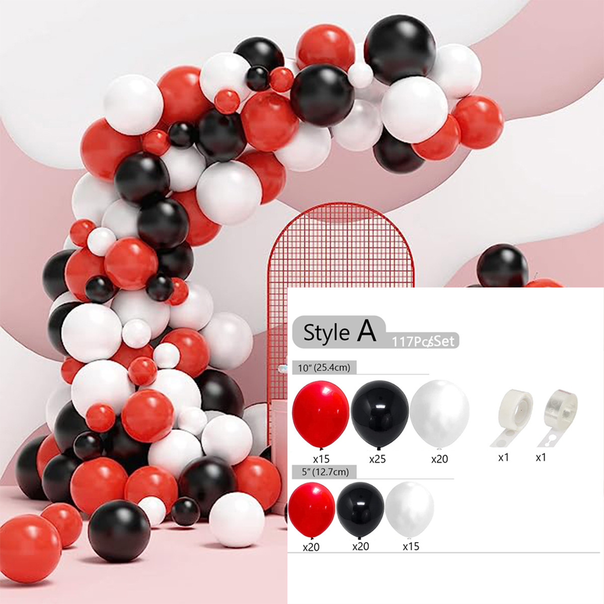 • 레드 흑백 풍선 아치 세트