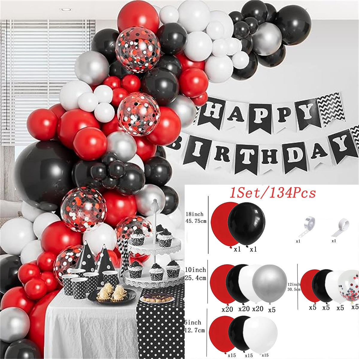• 블랙 레드 화이트 풍선 세트
