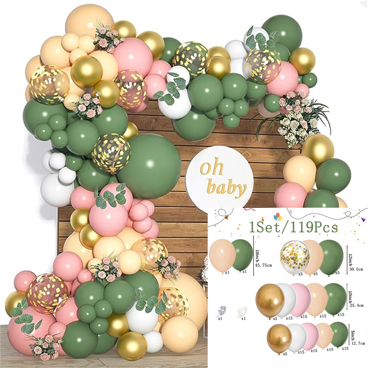 • 현자 녹색 풍선 아치 세트
