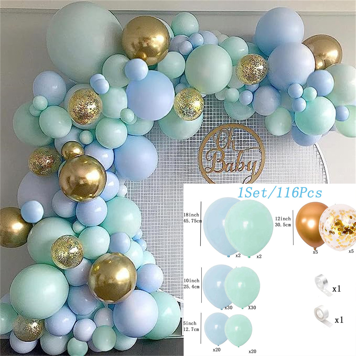 • 파란색과 녹색 금 풍선 세트