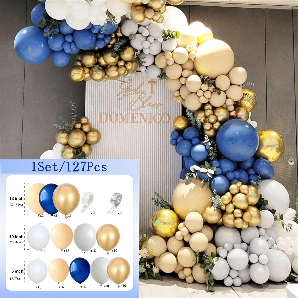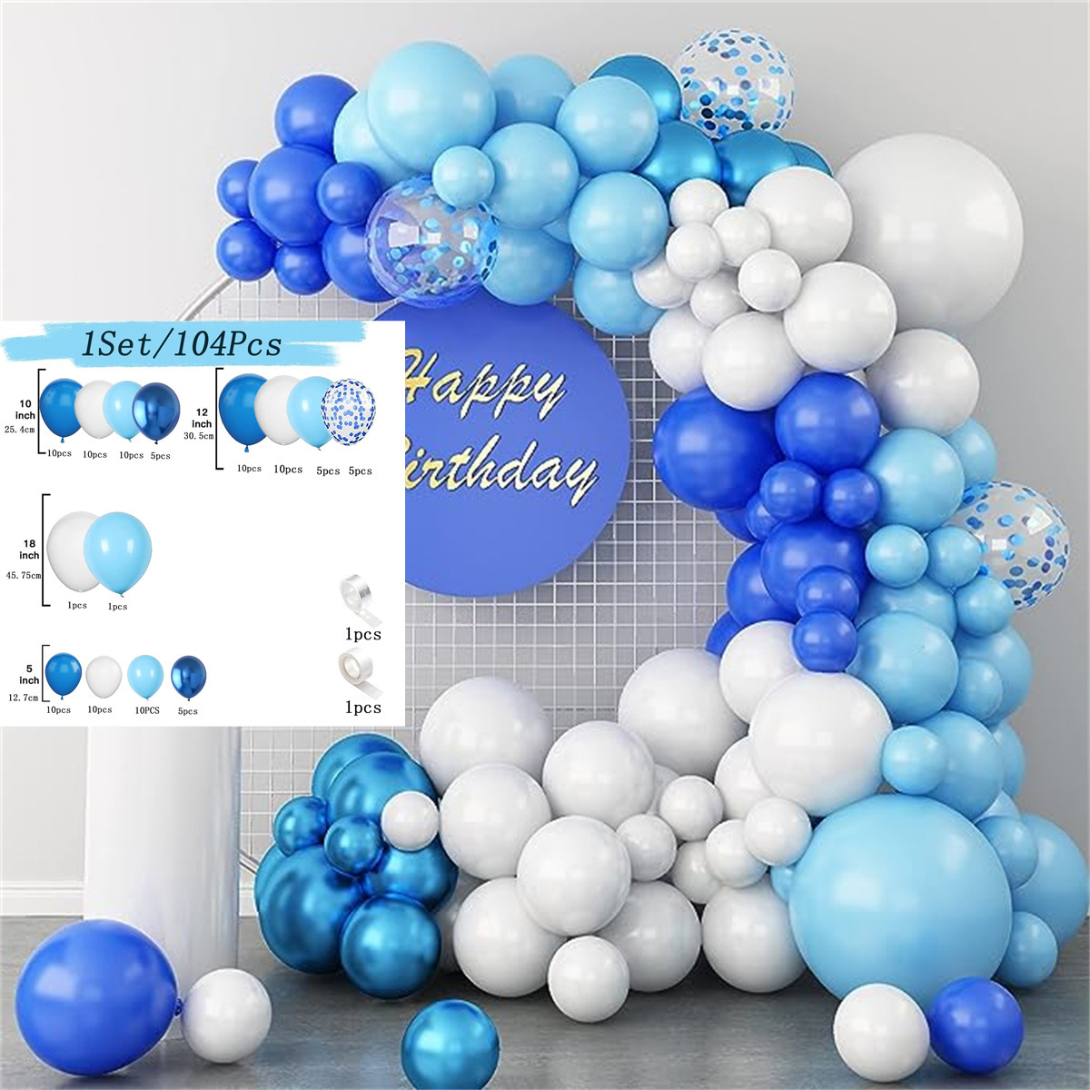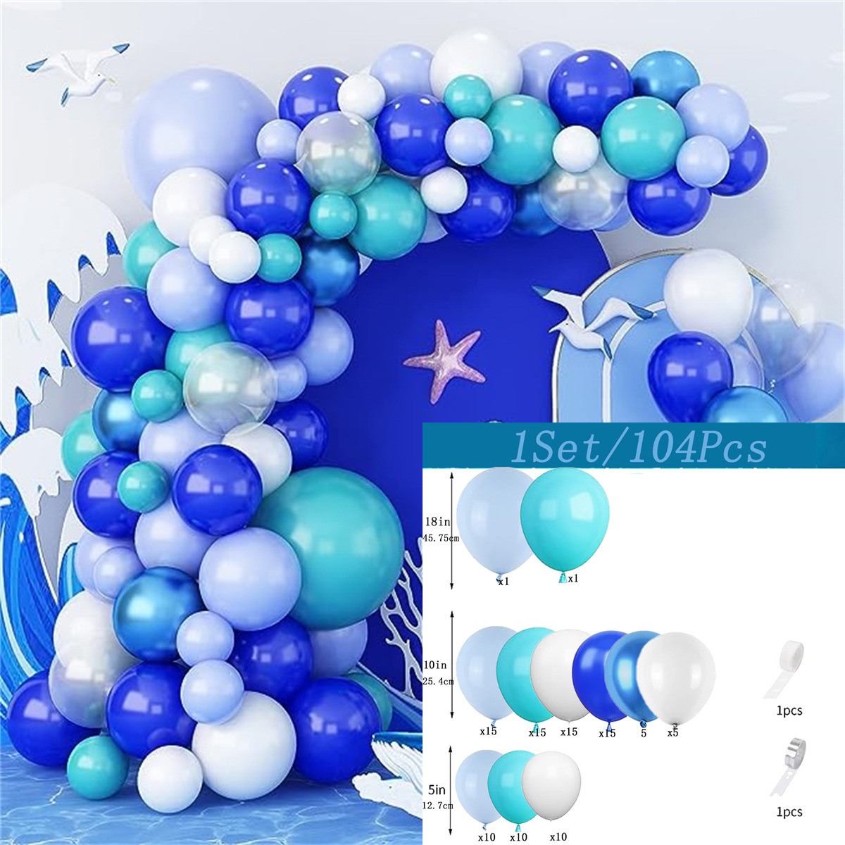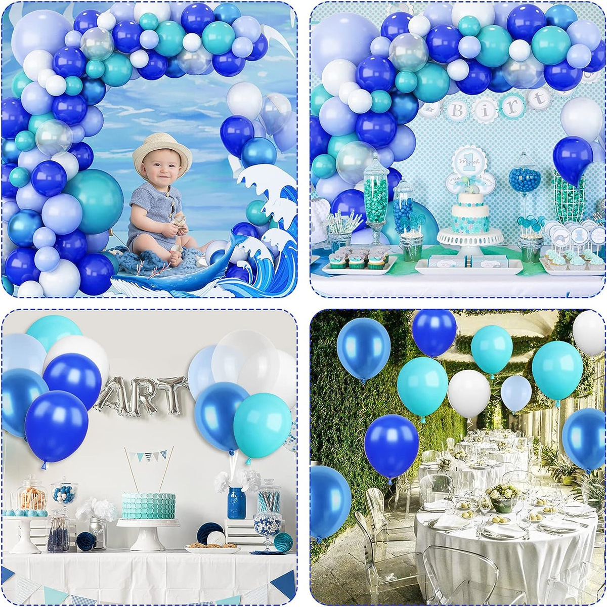 • 파란색과 흰색 풍선 아치 세트