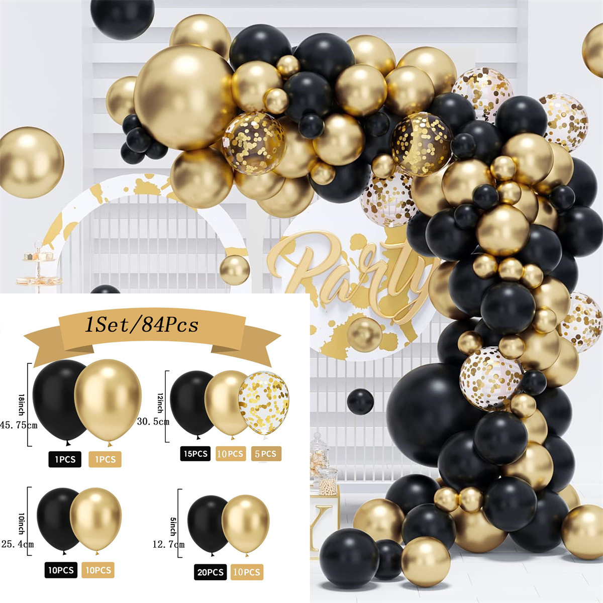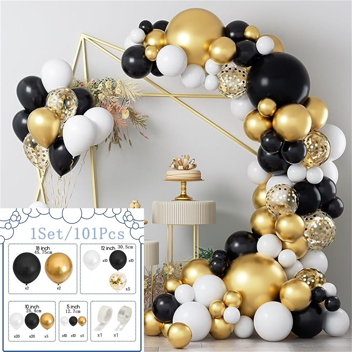 • 블랙과 골드 풍선 아치 세트