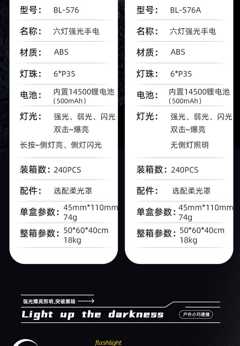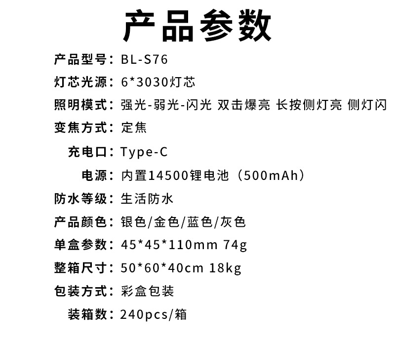 • BL-S76 [6 Wick] [사이드 라이트 포함] 강한 빛 손전등