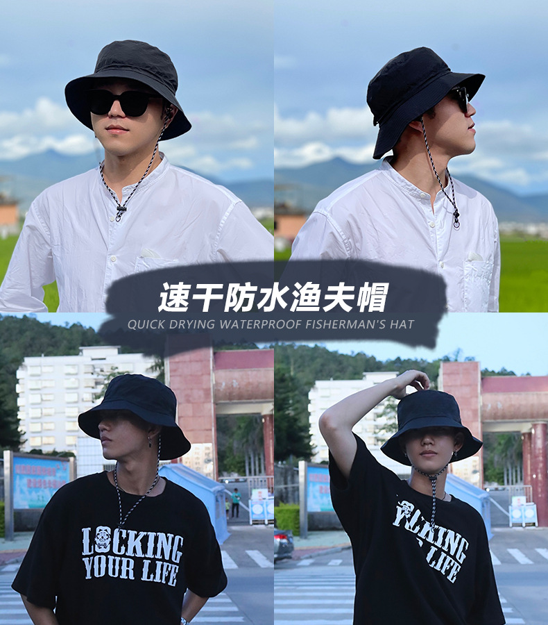 • 보관 가방 빠른 건조 어부 모자-블랙