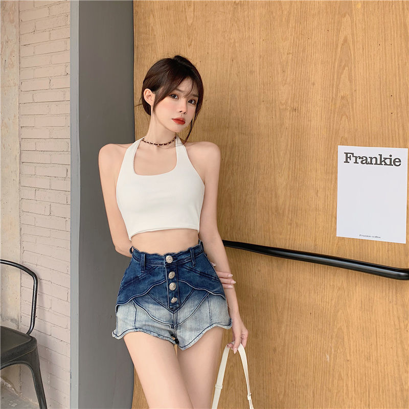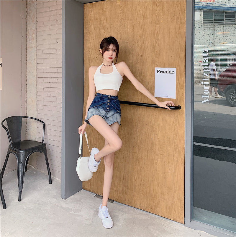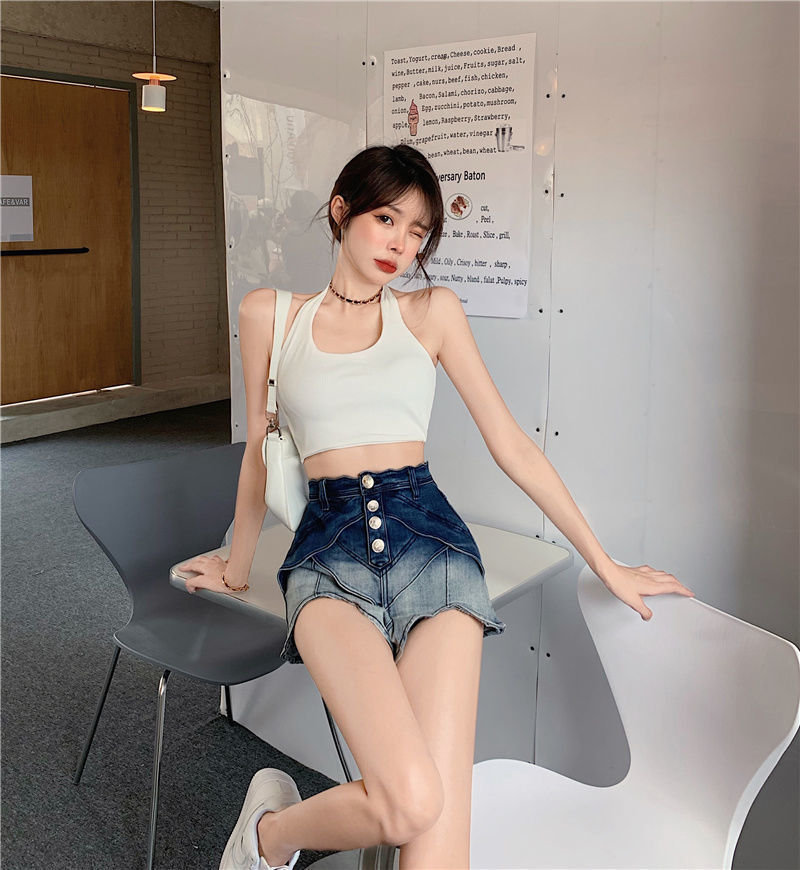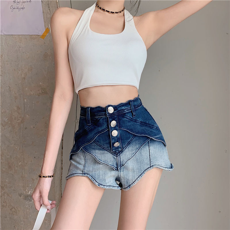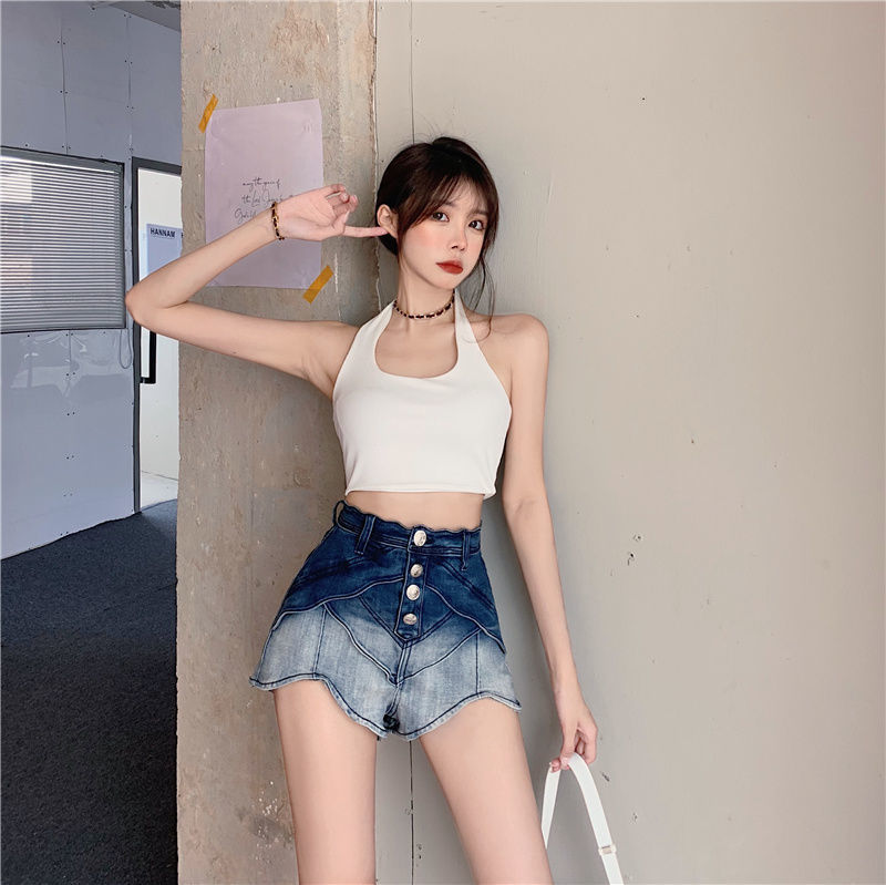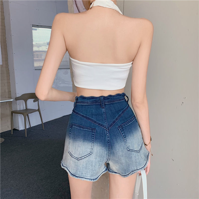 2024 여름 새로운 그라디언트 컬러 디자인 넓은 다리 데님 반바지 여성의 높은 허리 스트레이트 캐주얼 핫 팬츠스토어 가기