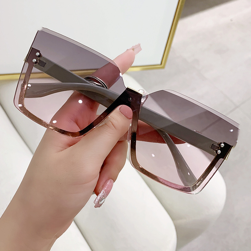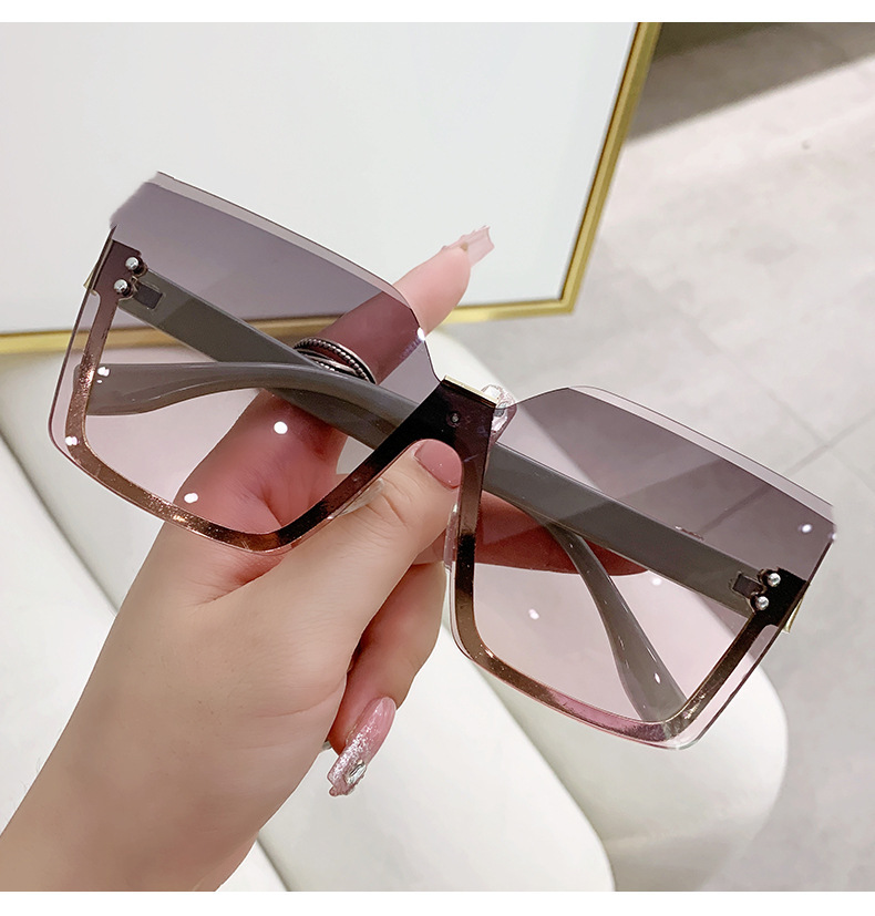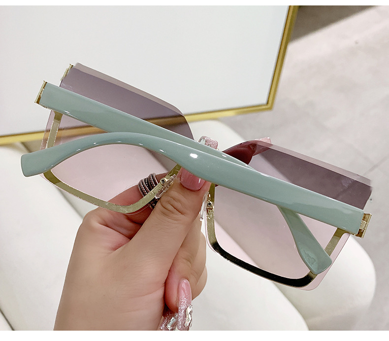 프레임리스 트리밍 메쉬 레드 선글라스 남성과 여성의 맞춤형 사각형 고급 선글라스 오션 그라디언트 대형 프레임 안경스토어 가기