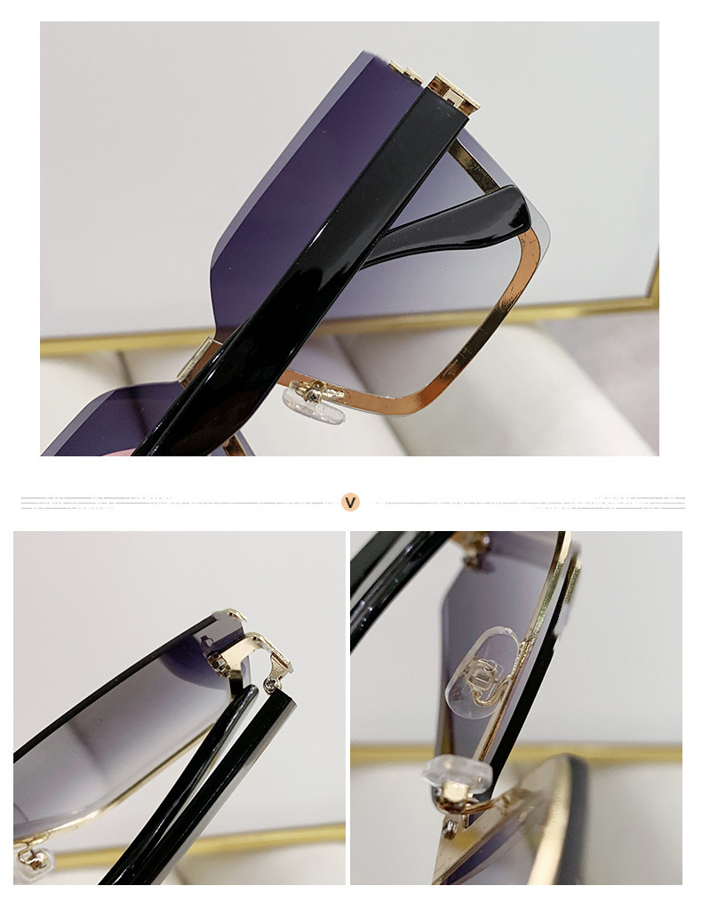 프레임리스 트리밍 메쉬 레드 선글라스 남성과 여성의 맞춤형 사각형 고급 선글라스 오션 그라디언트 대형 프레임 안경