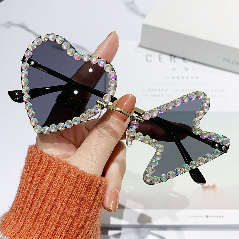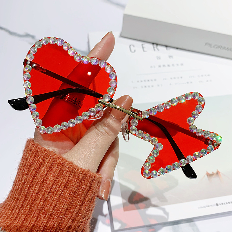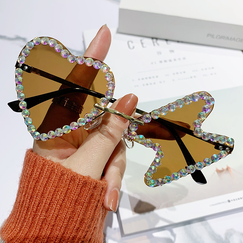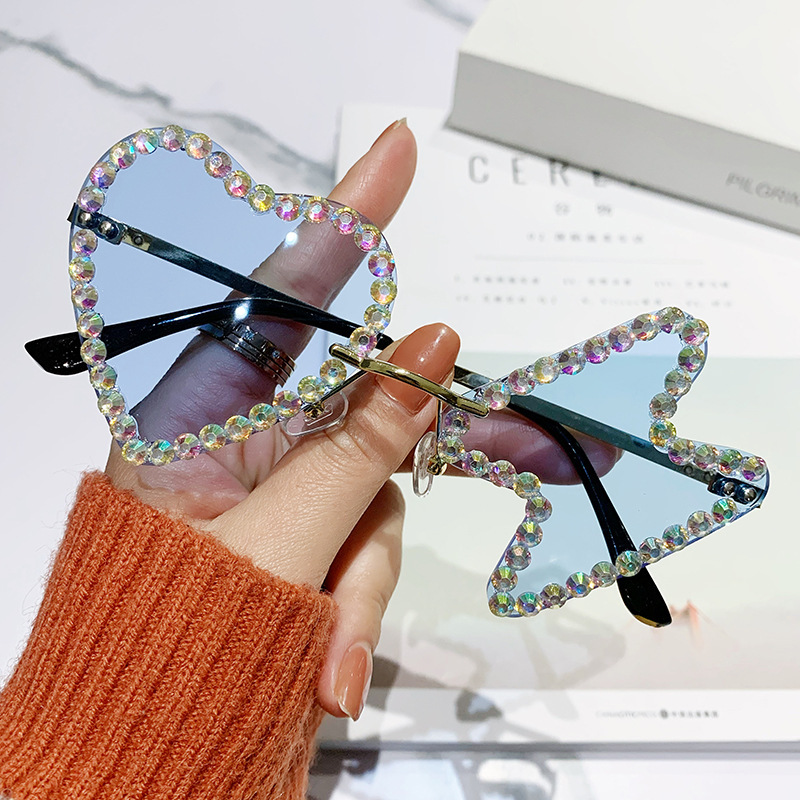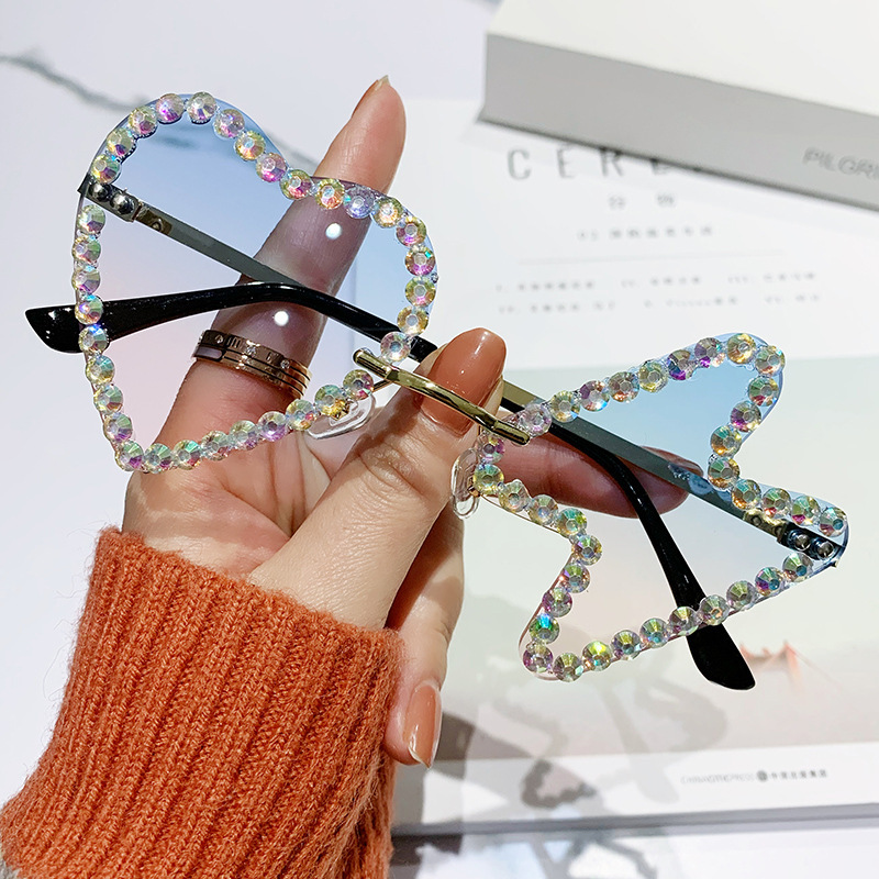 여성 유럽과 미국 스타일의 맞춤형 프레임리스 다이아몬드 금속 선글라스 사랑 번개 파티 재미있는 힙합 안경스토어 가기