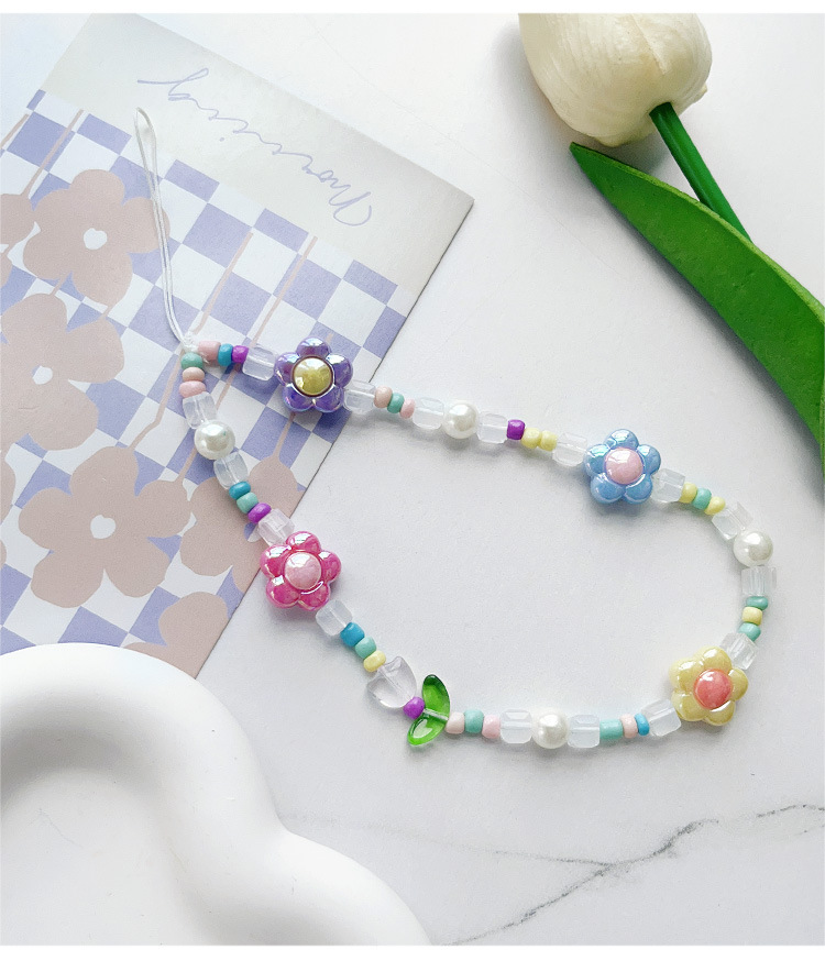 새로운 창조적 인 튤립 꽃 구슬 휴대 전화 끈 여성 꽃 팔찌 패션 휴대 전화 체인 펜던트스토어 가기