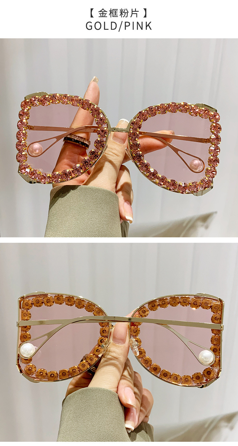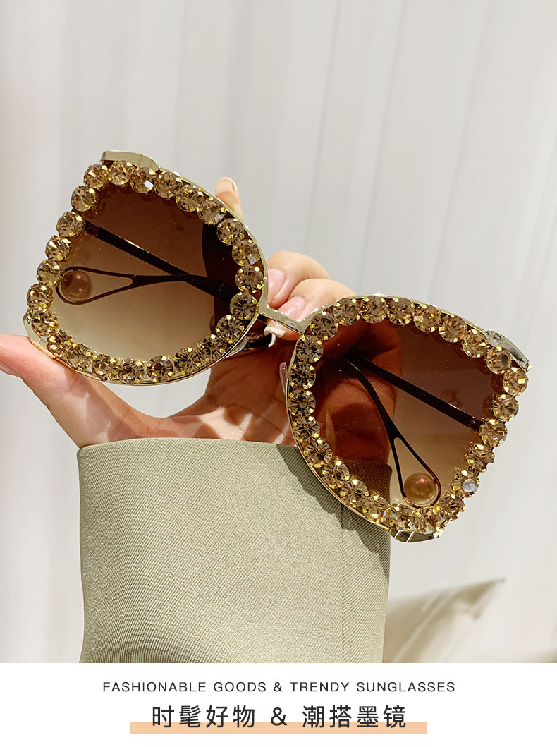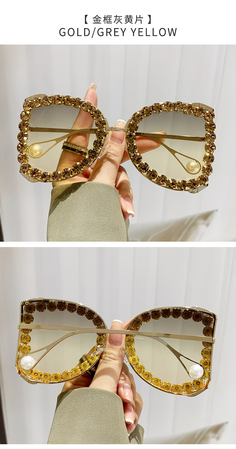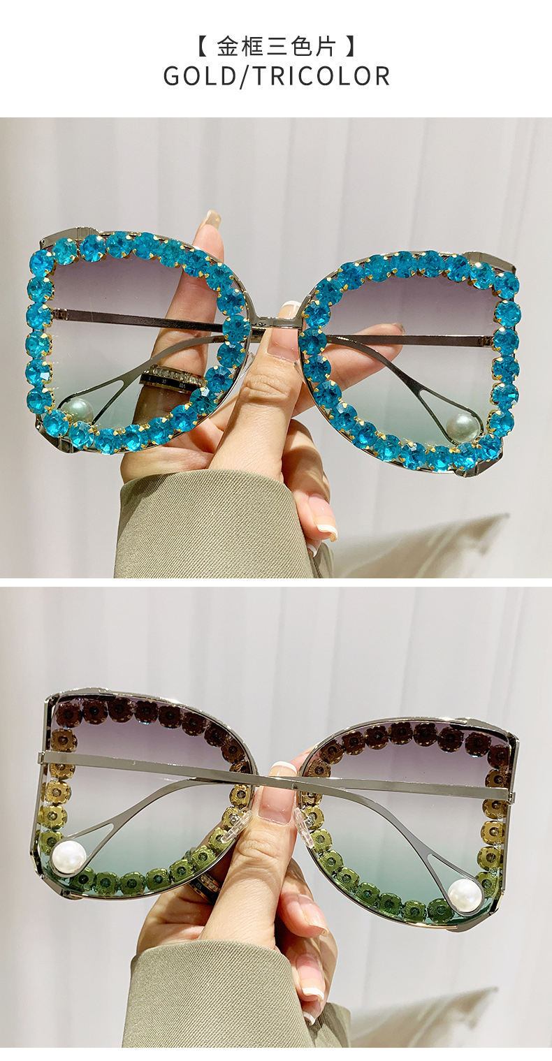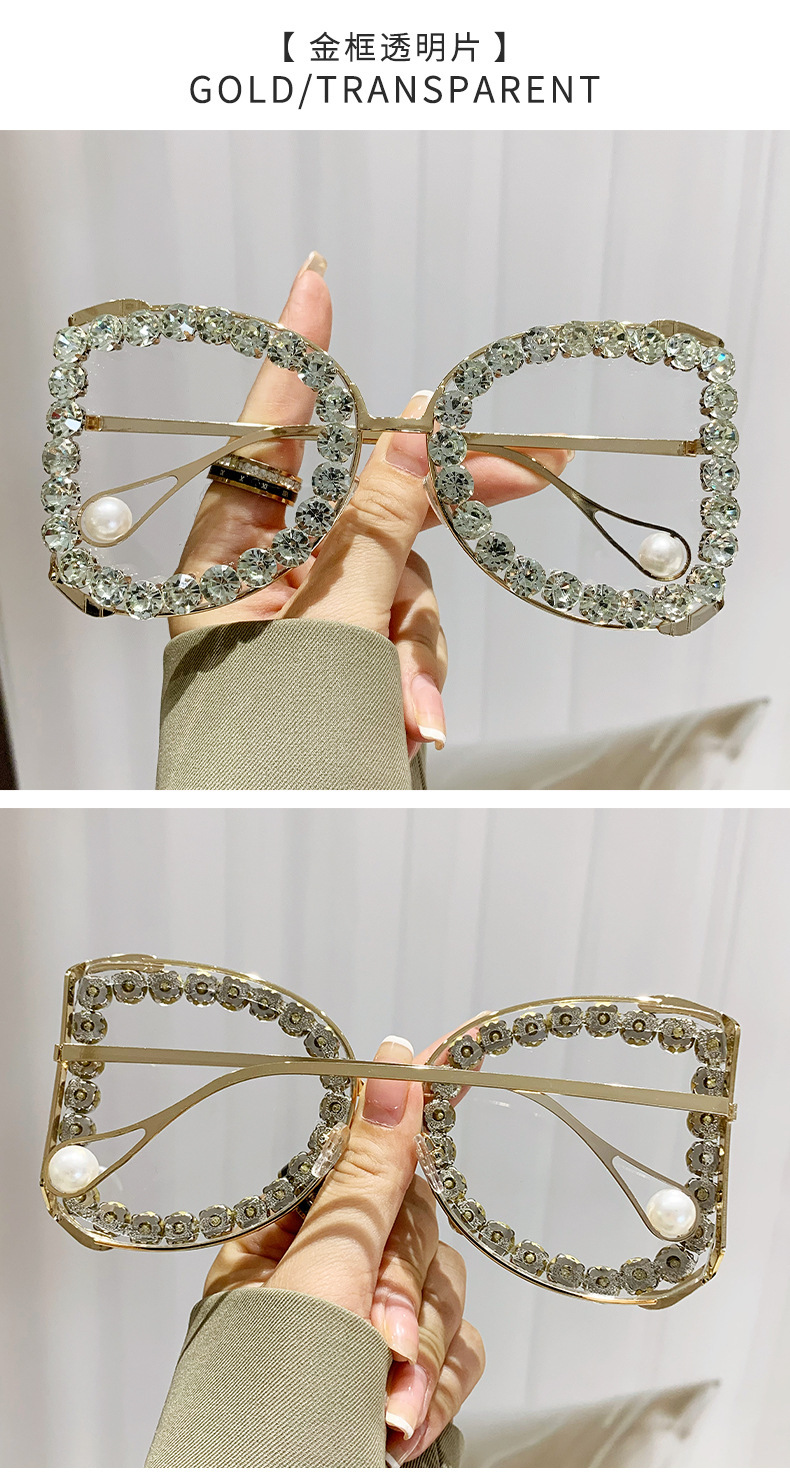 유럽과 미국의 인기있는 대형 프레임 모조 다이아몬드 선글라스 여성의 국경 간 새로운 선글라스 해양 다이아몬드 금속 안경스토어 가기