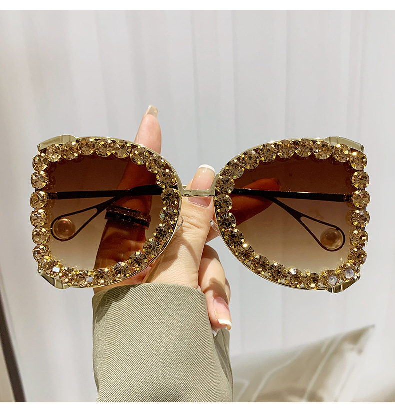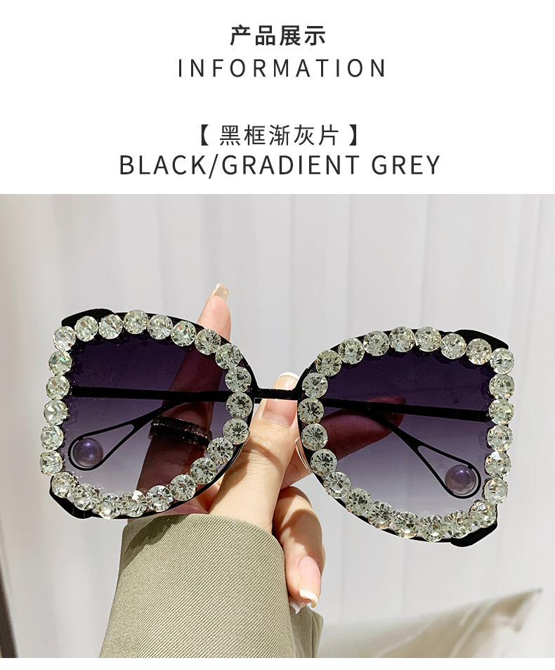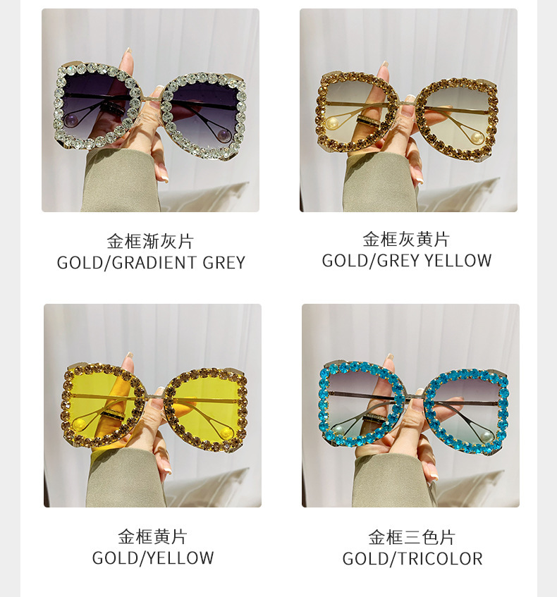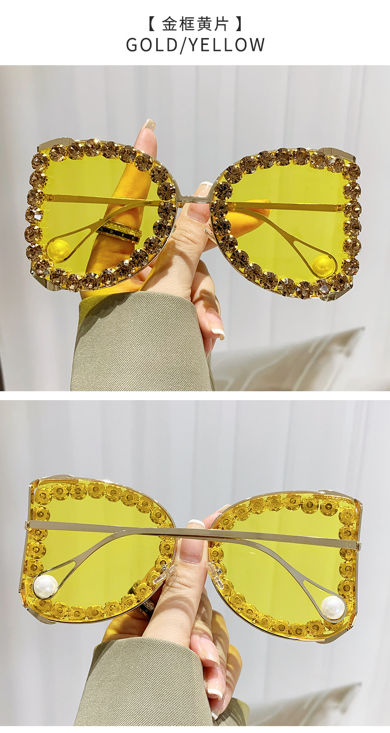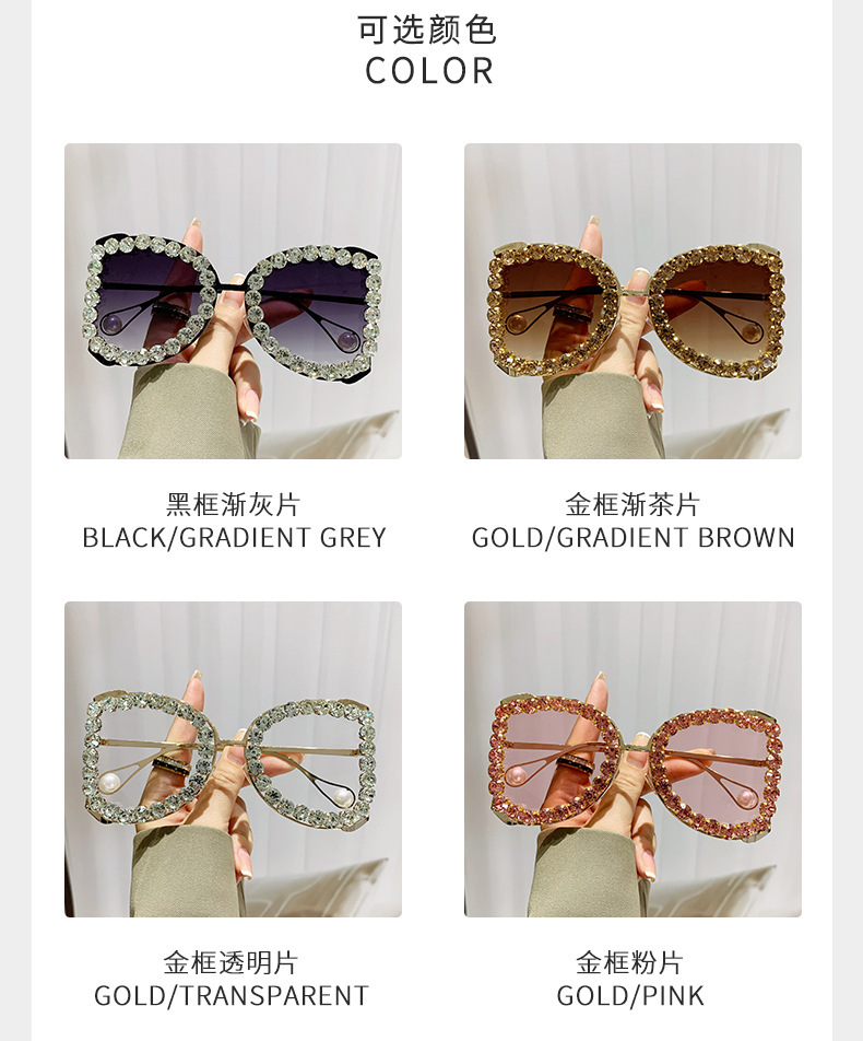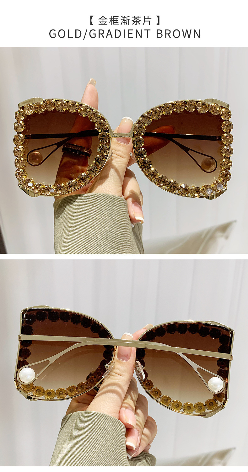 유럽과 미국의 인기있는 대형 프레임 모조 다이아몬드 선글라스 여성의 국경 간 새로운 선글라스 해양 다이아몬드 금속 안경스토어 가기