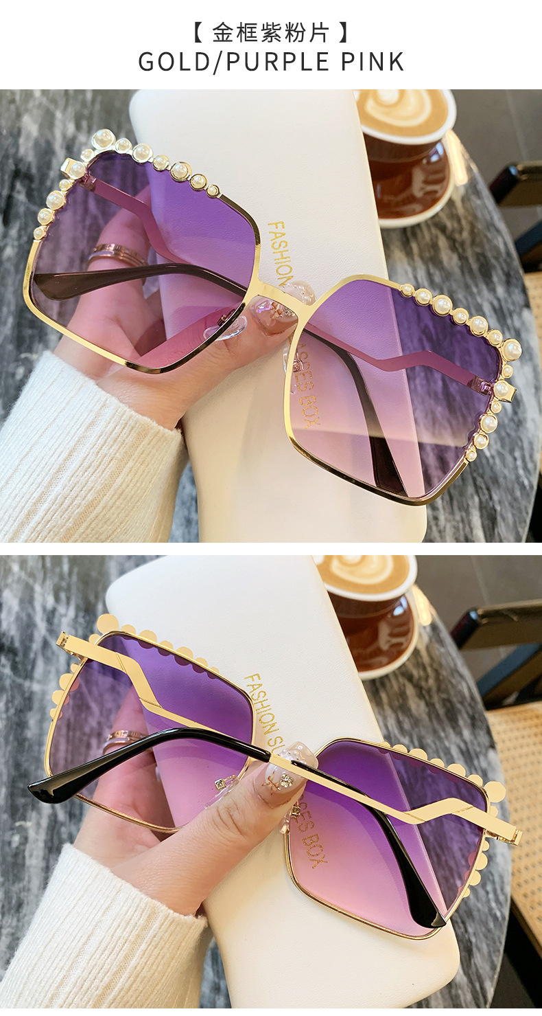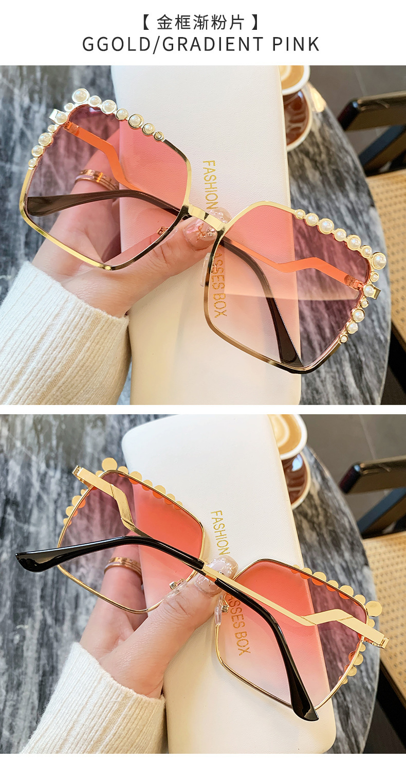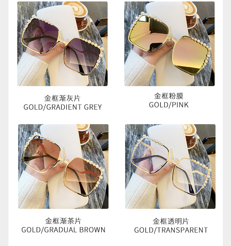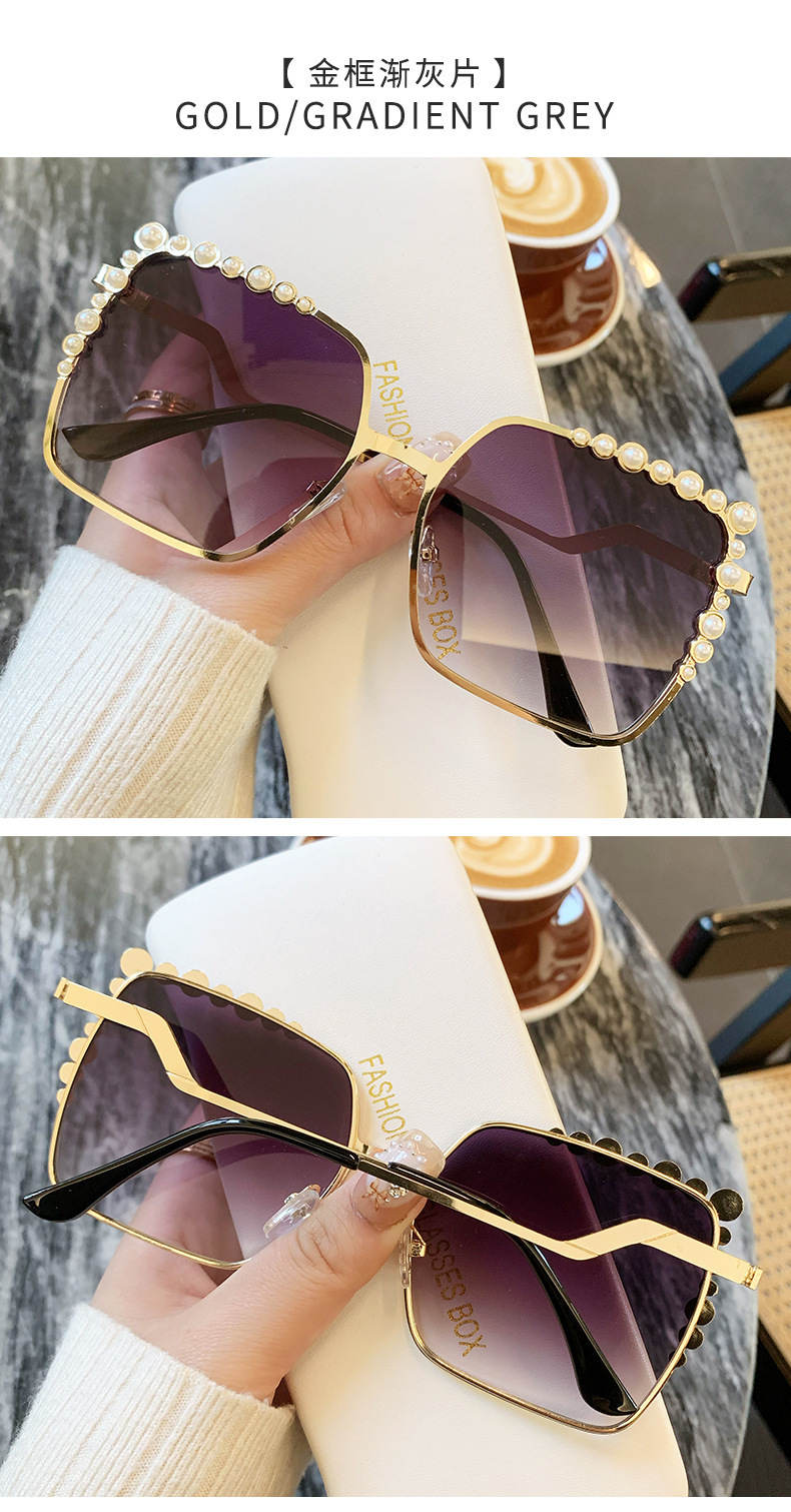 새로운 진주 선글라스 금속 디자인 프레임 패션 선글라스 유럽과 미국의 장식 대형 프레임 다이아몬드 선글라스