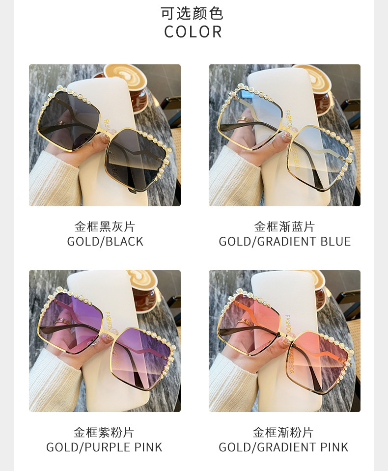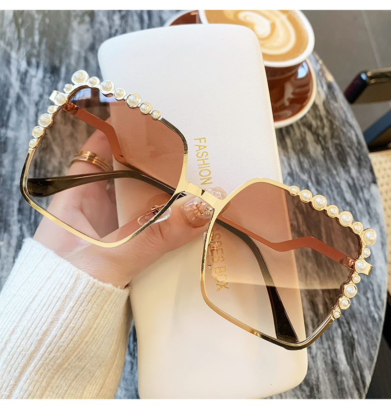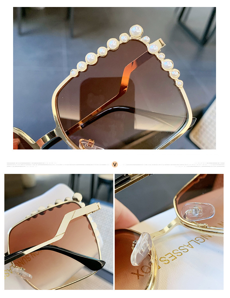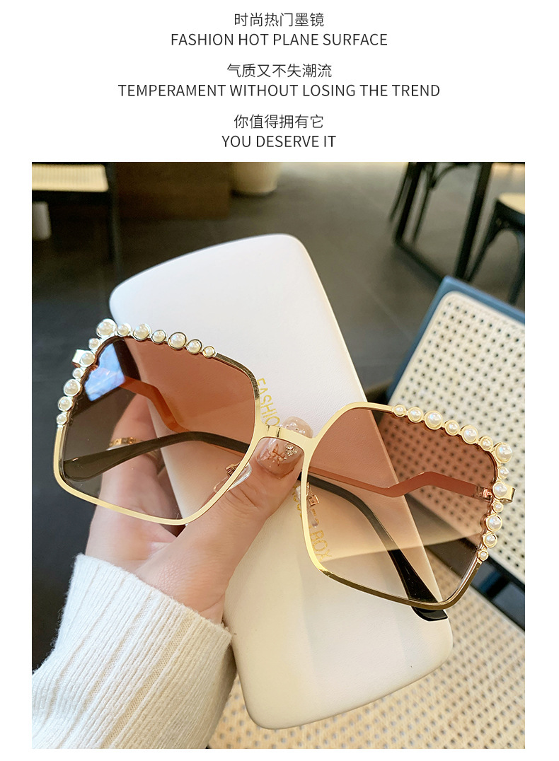 새로운 진주 선글라스 금속 디자인 프레임 패션 선글라스 유럽과 미국의 장식 대형 프레임 다이아몬드 선글라스