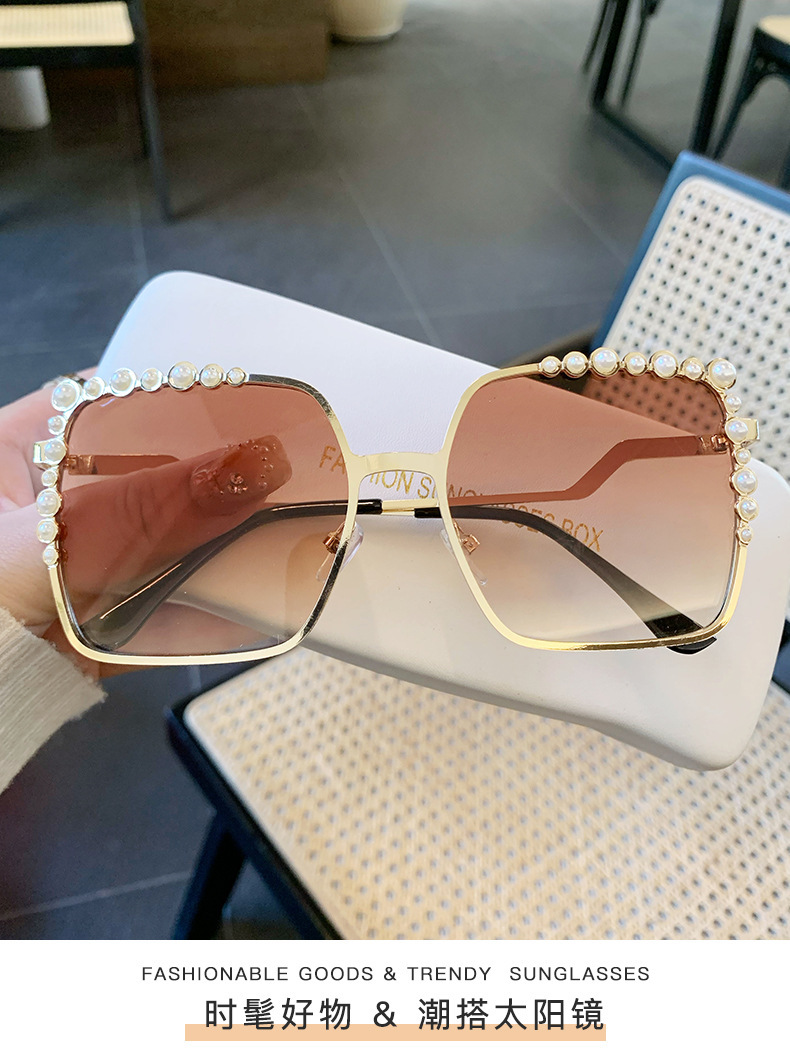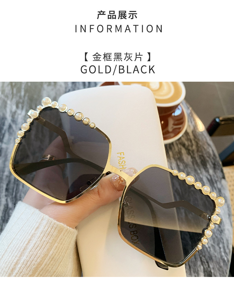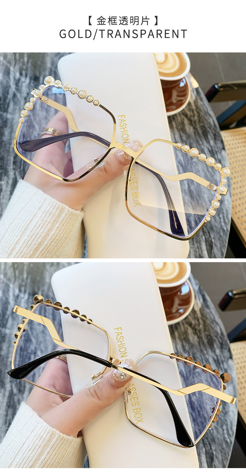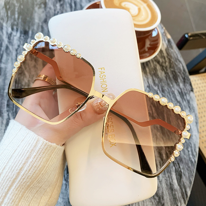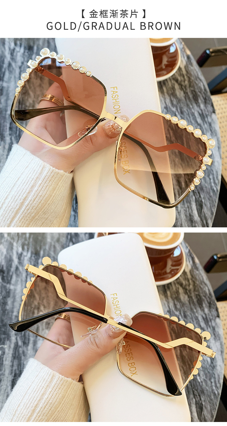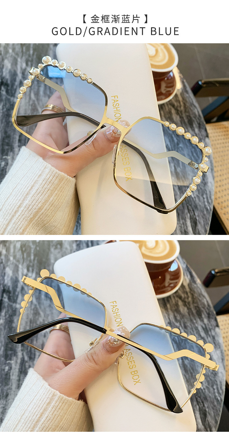 새로운 진주 선글라스 금속 디자인 프레임 패션 선글라스 유럽과 미국의 장식 대형 프레임 다이아몬드 선글라스스토어 가기