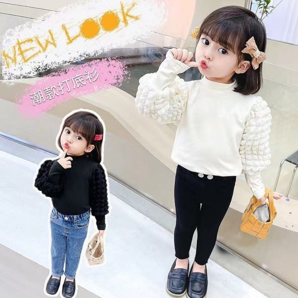 여아용 셔츠 2025 봄 신작 흰색 티셔츠 탑 퍼프 슬리브 라운드 넥 중대형 아동복 소녀 스타일스토어 가기